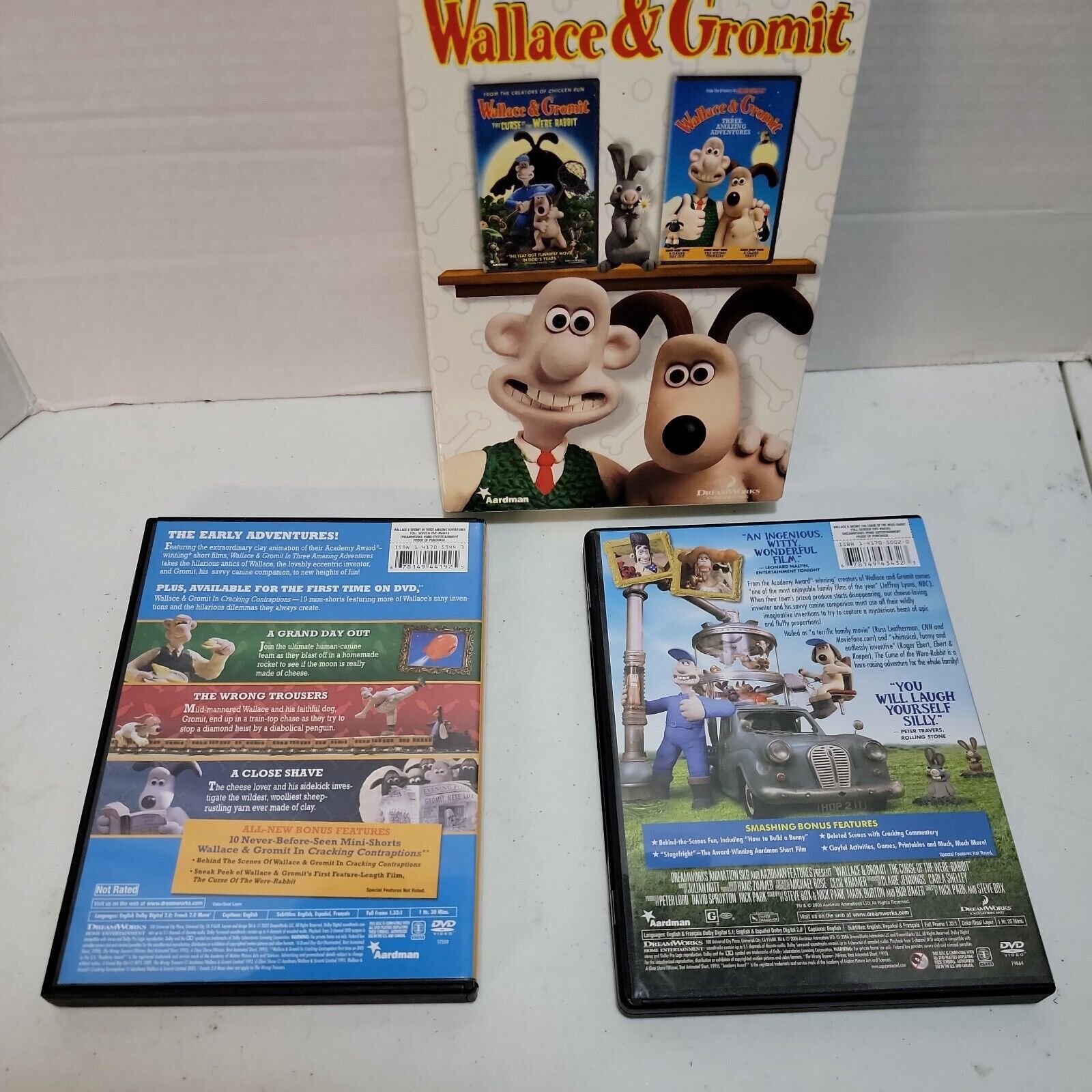WALLACE GROMIT - THREE AMAZING ADVENTURES + THE CURSE OF THE WERE RABBIT - DVD.