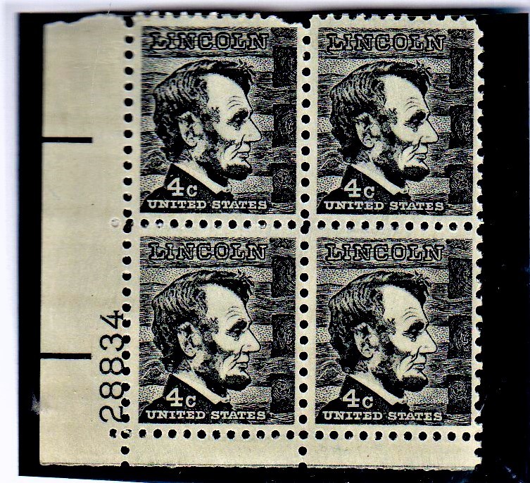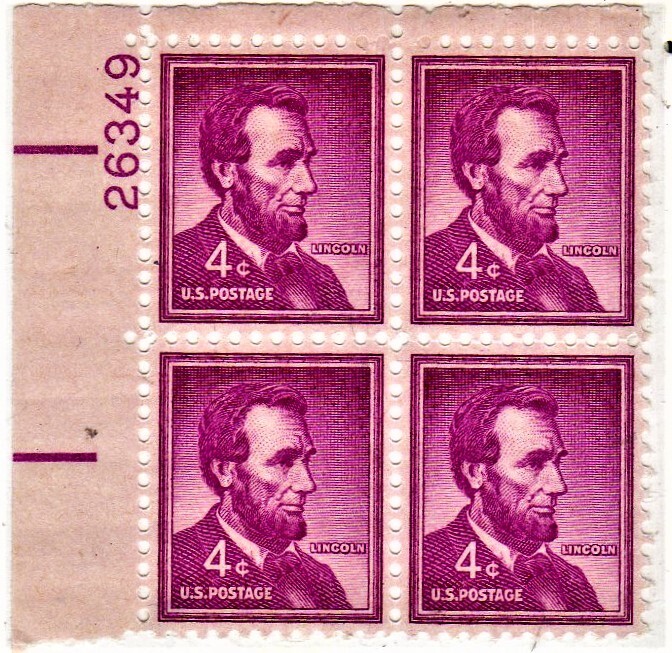 Lincoln Black 4 Cent Stamps 1965 & ABRAHAM LINCOLN Blue BLOCK OF 4 stamps 1954