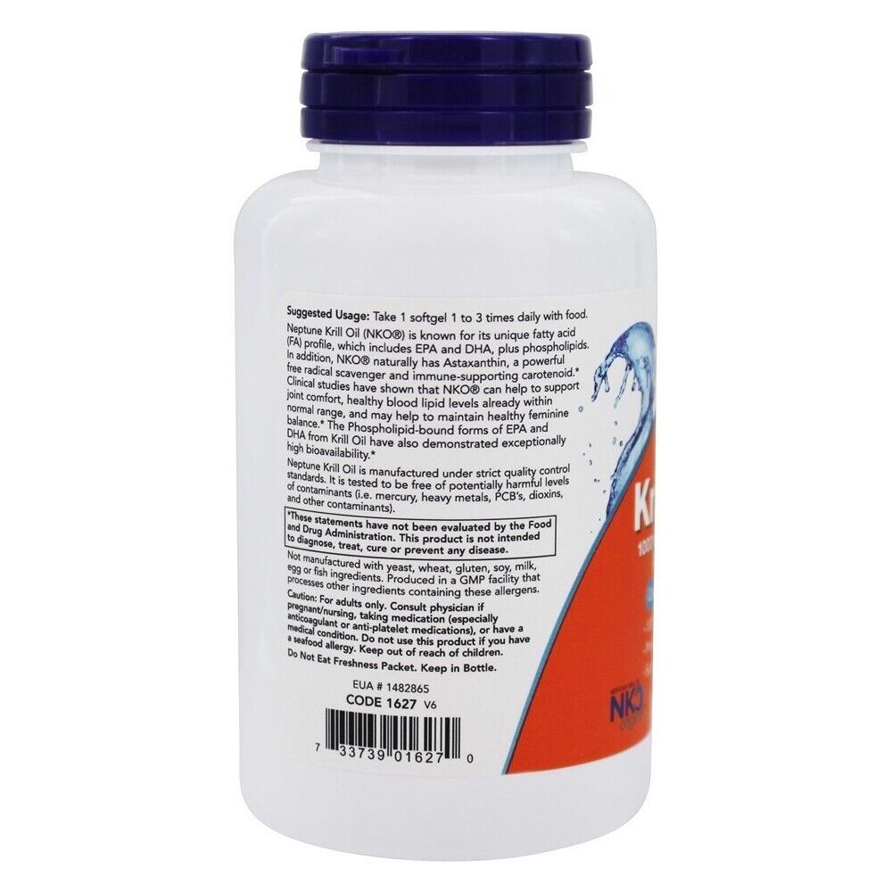 Now Foods Neptune Krill is known for its unique fatty acid (FA) profile, as well as for its rich antioxidant content. Now Foods Neptune Krills balanced fatty acid content includes not only EPA and DHA, the crucial Omega-3 FAs, but Omega-9 FAs and phospholipids, as well.Now Foods Neptune Krillis a rich source of Astaxanthin, a powerful immune-supporting antioxidant. Clinical studies have shown thatNeptune Krill Oilcan support joint comfort, healthy blood lipid levels, and may reduce symptoms of pre-menstrual syndrome. Now Foods Neptune Krill product is an enteric coated, odor controlled softgel to make it easier to tolerate for those who may experience nausea or reflux from fish oils. Now Foods Neptune Krill is manufactured under strict quality control standards. It is tested to be free of potentially harmful levels of contaminants (i.e. mercury, heavy metals, PCBs, dioxins, and other contaminants).