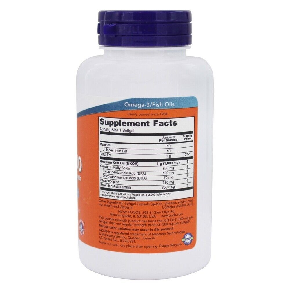 NOW Foods Neptune Krill 1000 Enteric Coated Double Strength 1000 mg.,60 Softgels