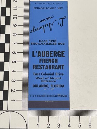 Vintage Matchbook Cover L’ Auberge French Restaurant. Orlando, FL gmg unstruck