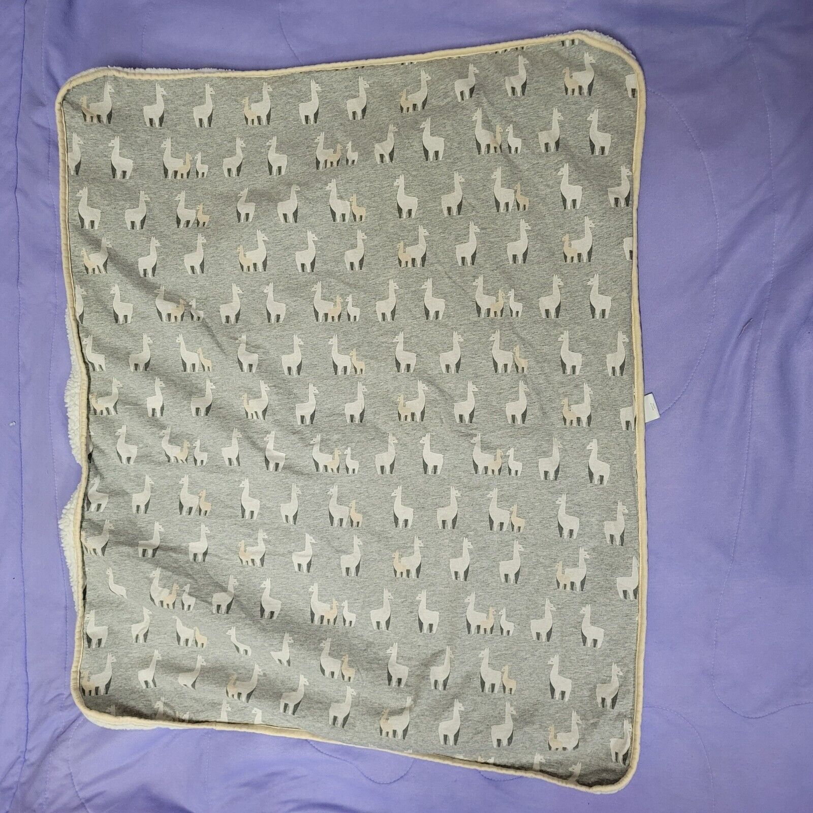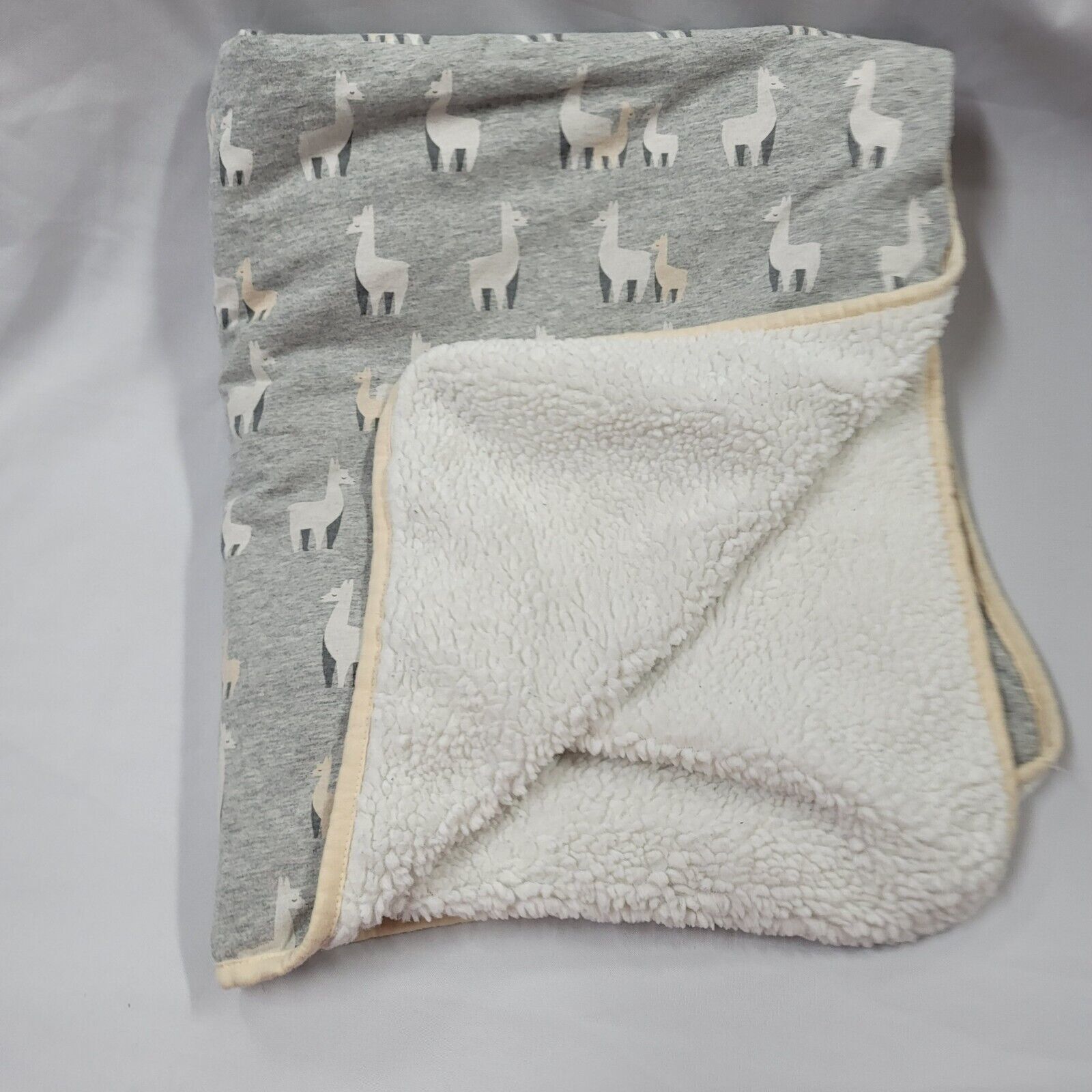Cloud Island Llamas Jersey Knit Faux Fur Baby Crib Blanket Gray White 30” X 36”