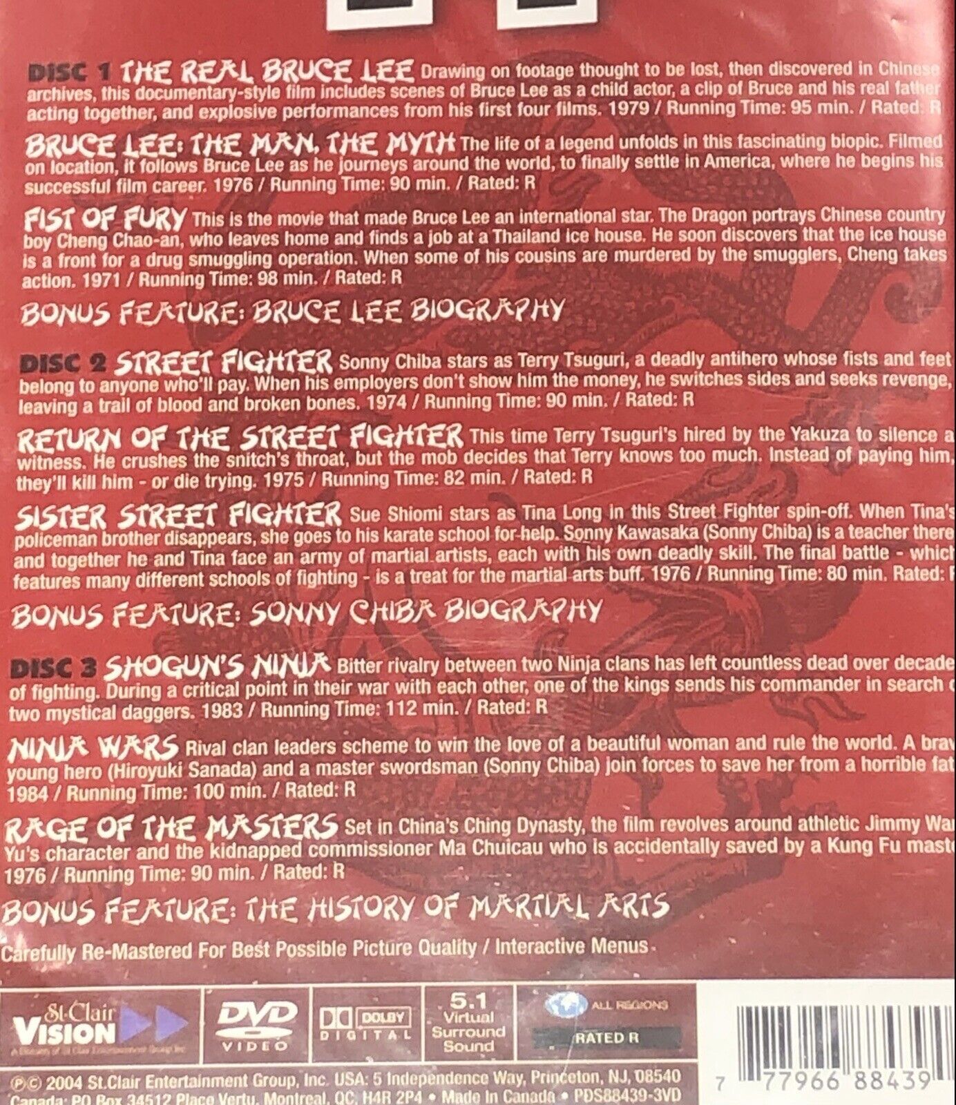 Martial Arts Masters (DVD 2004 3-Disc) Bruce Lee Sonny Chiba