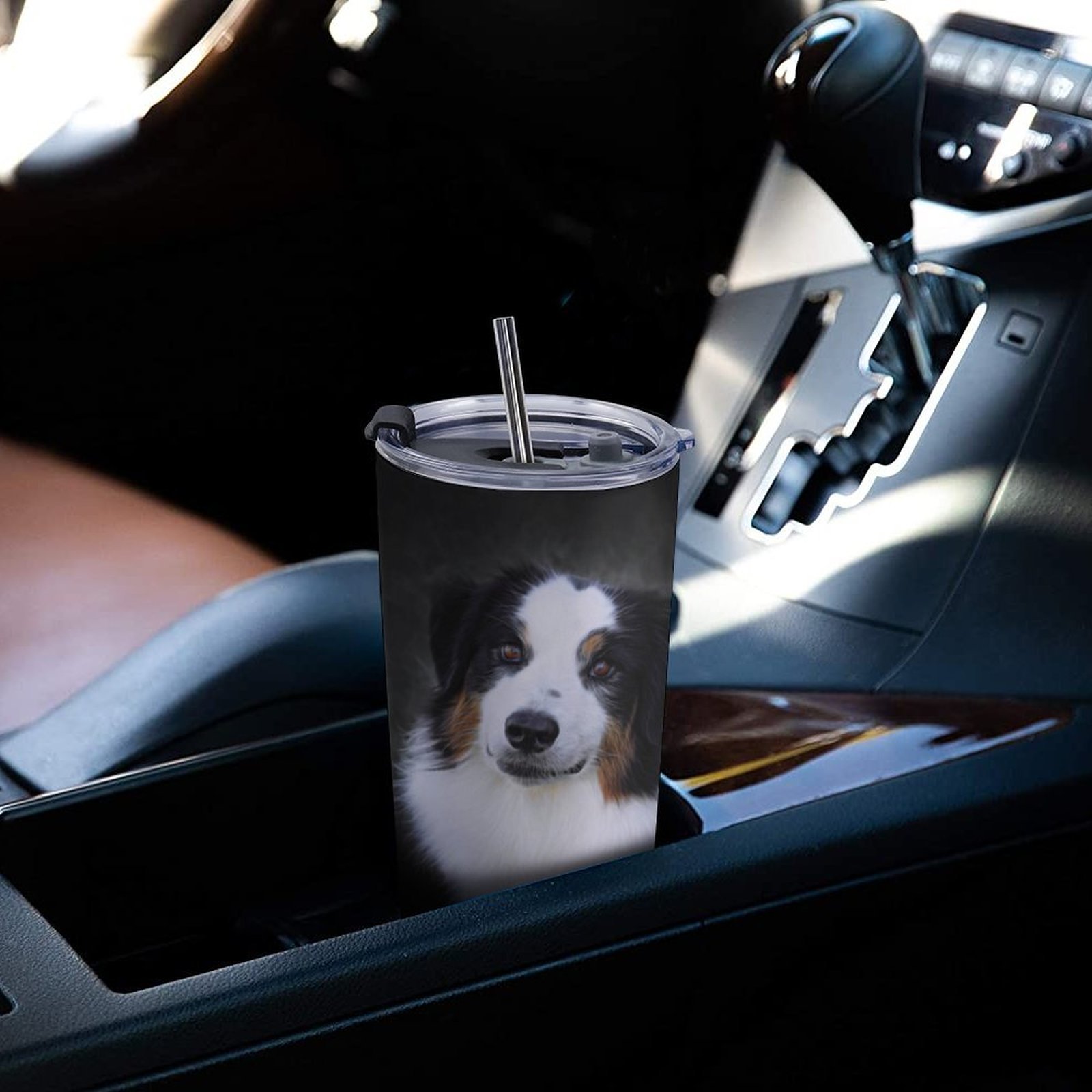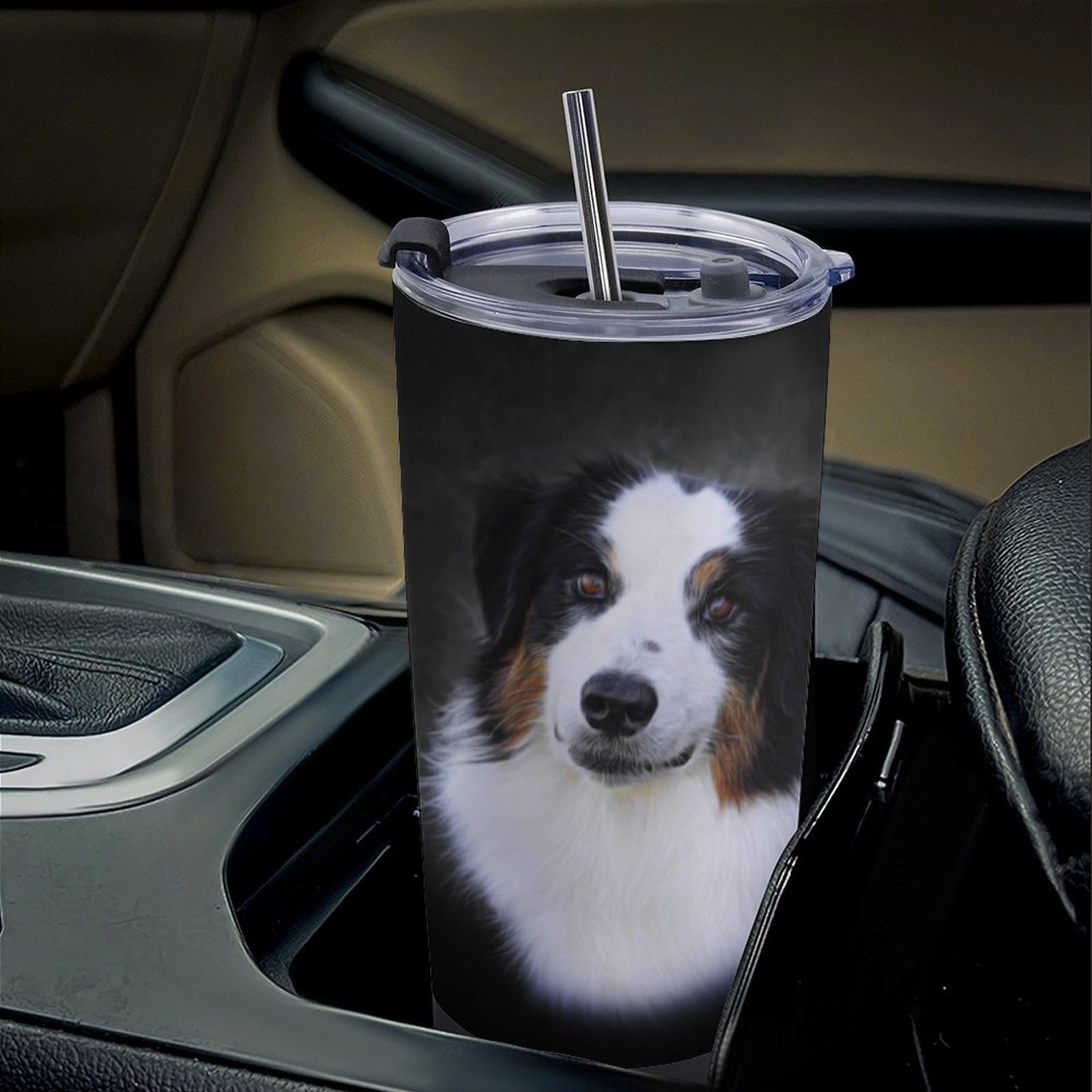 Mondxflaur Cute Dog Steel Thermal Mug Thermos with Straw for Coffee