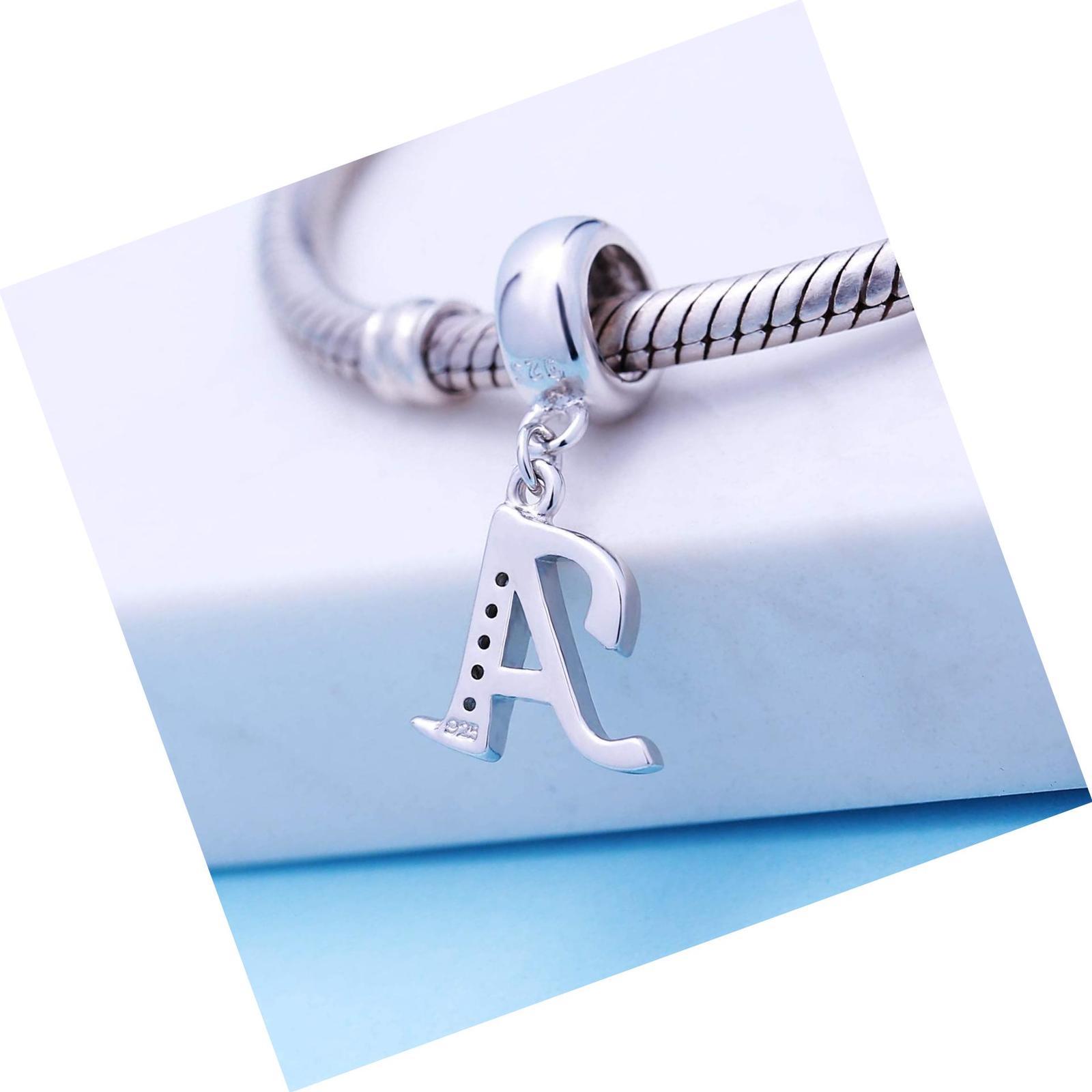 925 Sterling Silver Charms Alphabet Beads fit Pandora Charm