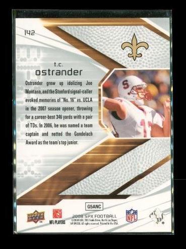 2008 UPPER DECK SPX ROOKIE Holographic Football Card #142 T.C. OSTRANDER New Orleans Saints Limited Edition 143/999