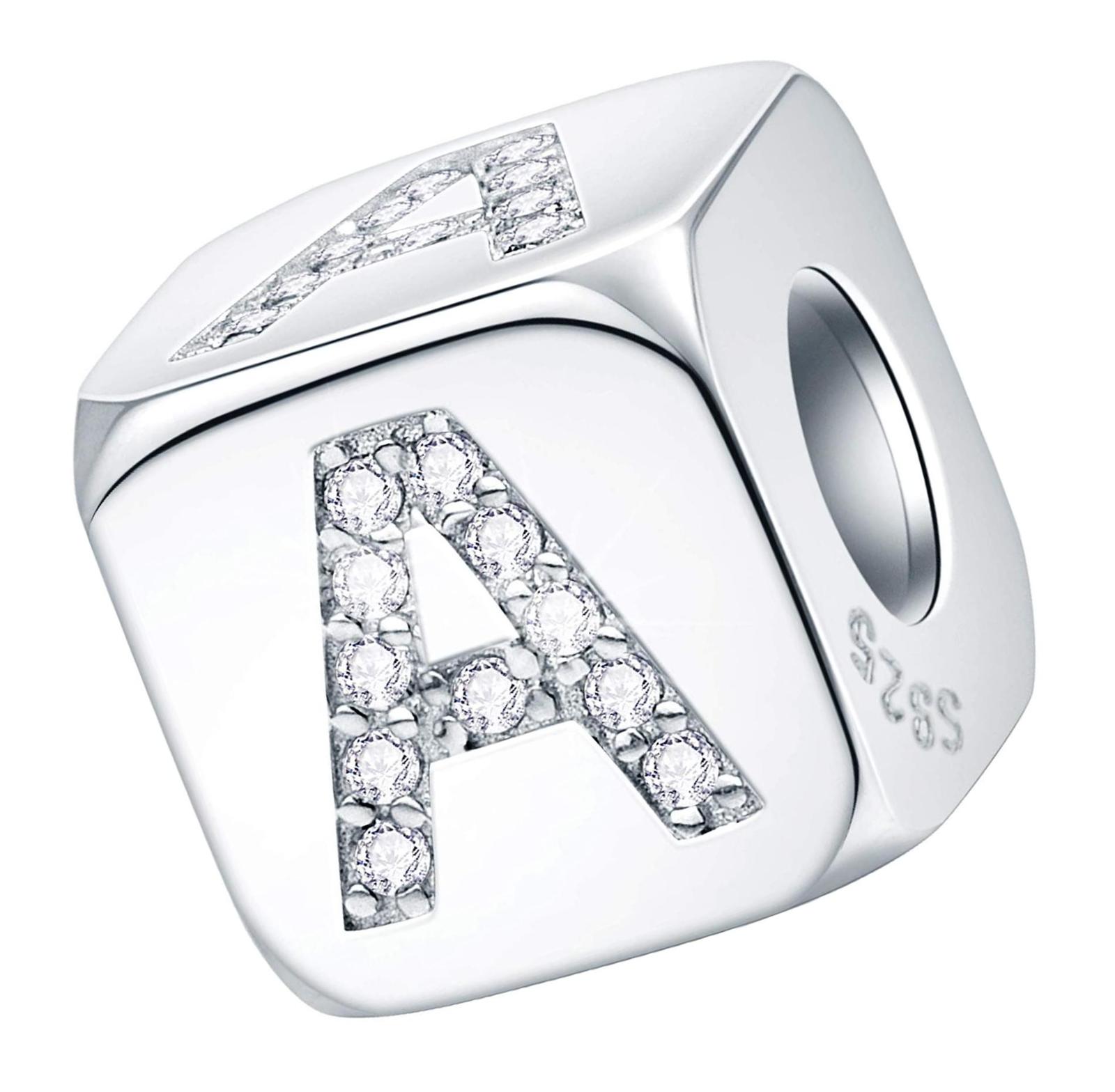 Dice-Shaped 26 Block Letters Charms Initial A-Z 925