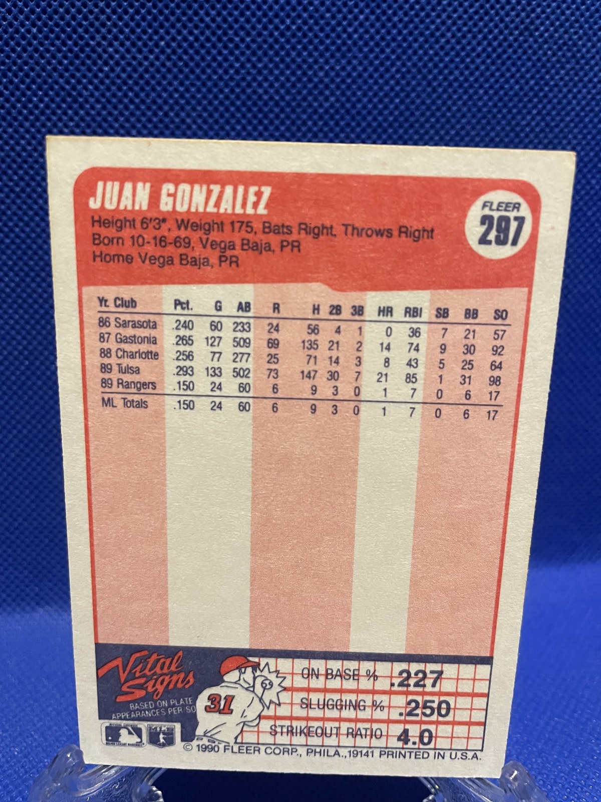 Juan Gonzalez 1990 Fleer Baseball Card # 297 and 50 similar items