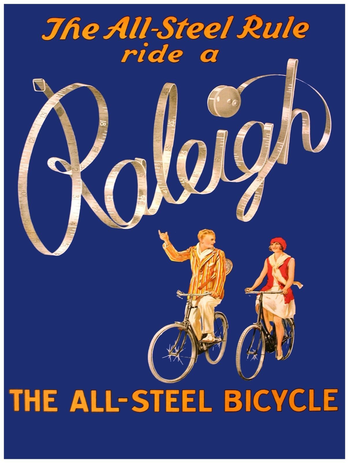 7978.Raleigh.The all steel bicycle.couple riding bikes.POSTER.art wall decor