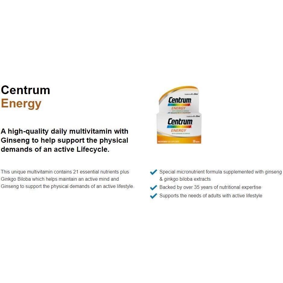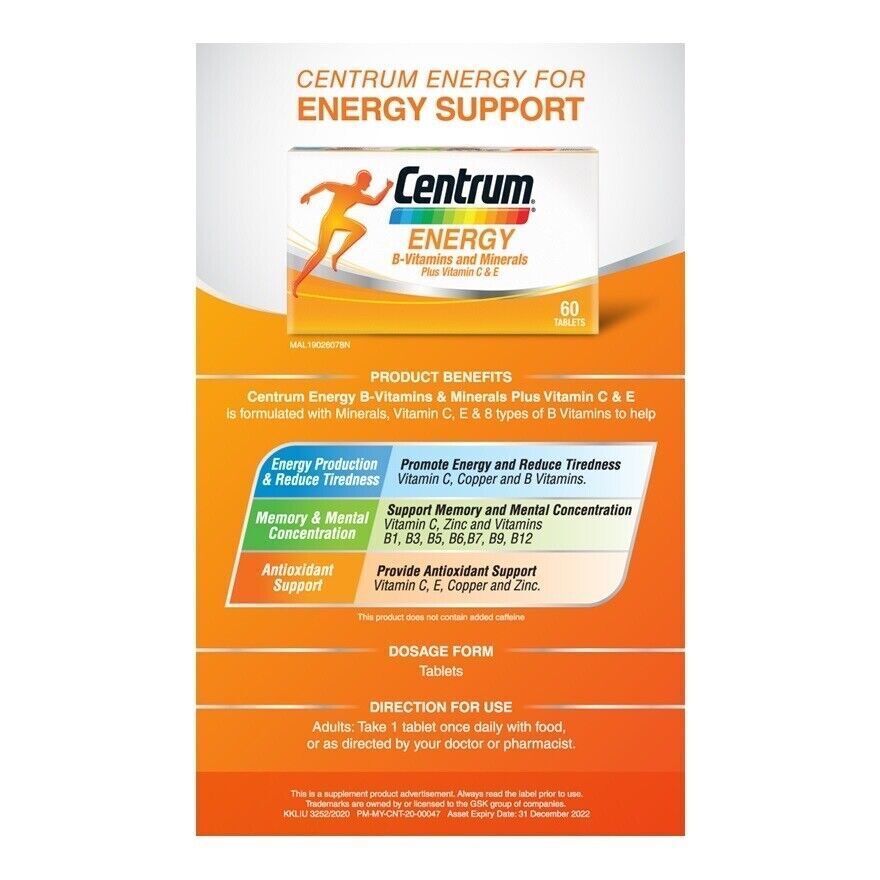 Nuevo Centrum Energy B-Vitaminas y Minerales + Vitamina C & E 60's Envío Gratis