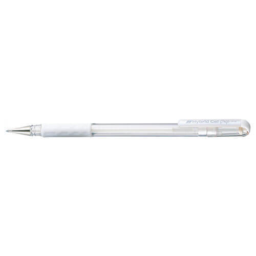 The Pentel Hybrid Gel Grip gel pen has an ultra smooth flowing pigment gel ink. It also features a rubber grip for optimum control. This dazzling ink is ideal for greeting cards, gift tags etc. Ideal for dark coloured paperRubber finger grip for optimum control and comfortCrystal-style barrelEasy view of remaining ink level0.8mm tip gives approx a 0.4mm fine line width