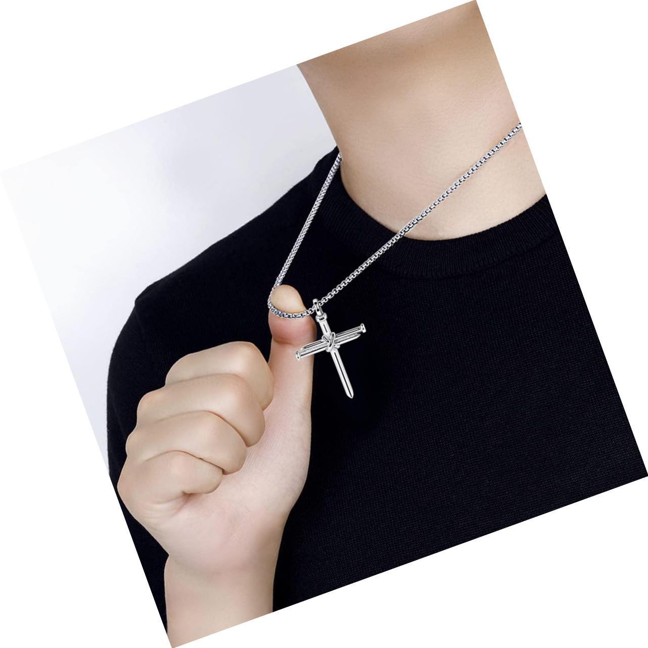 Women Men Stainless Steel 3 Nails Wire Wrapped Cross