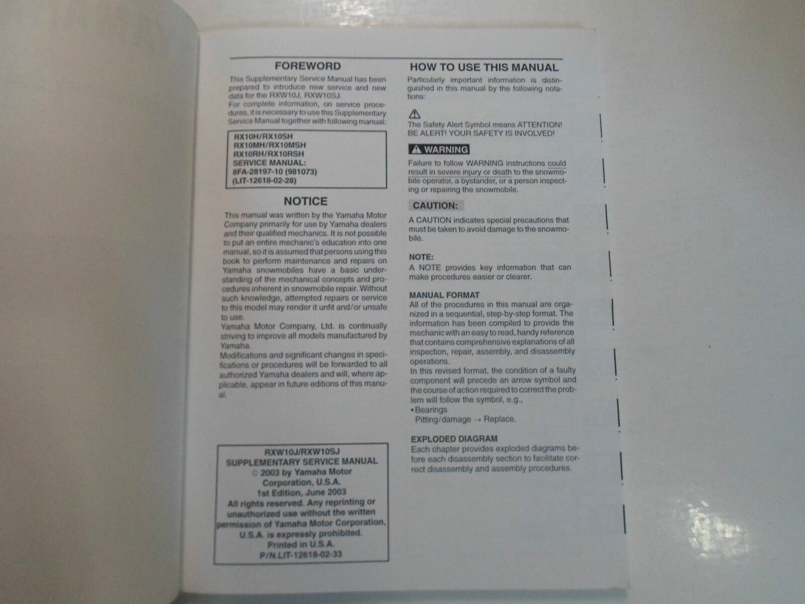 2004 Yamaha RXW10J RXW10SJ Supplementary Service Manual FACTORY OEM BOOK 04