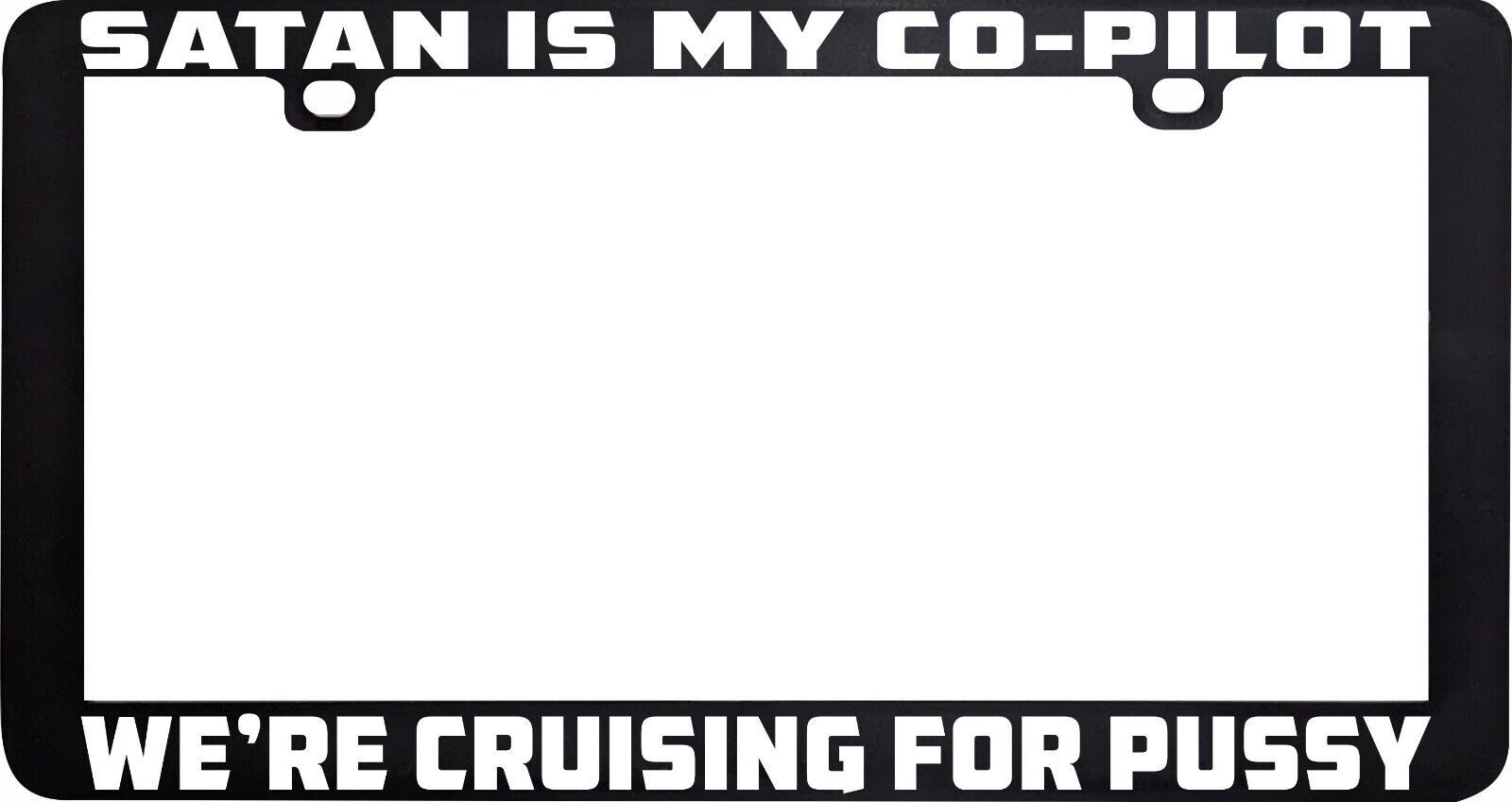SATAN IS MY COPILOT CO-PILOT WE'RE CRUSING FOR PUSSY LICENSE PLATE FRAME HOLDER