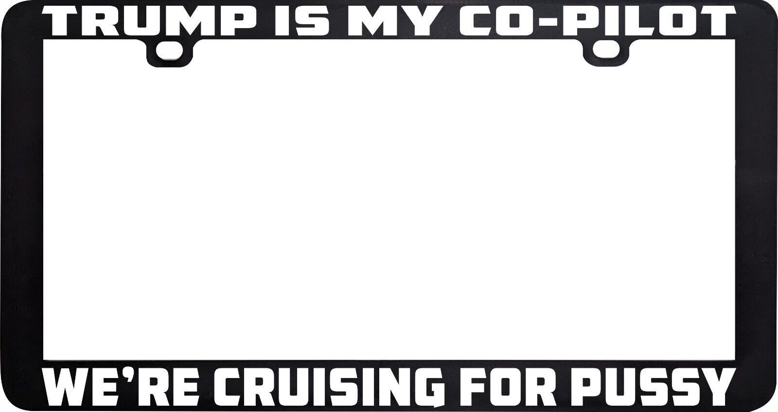 TRUMP IS MY COPILOT CO-PILOT WE'RE CRUSING FOR PUSSY LICENSE PLATE FRAME HOLDER
