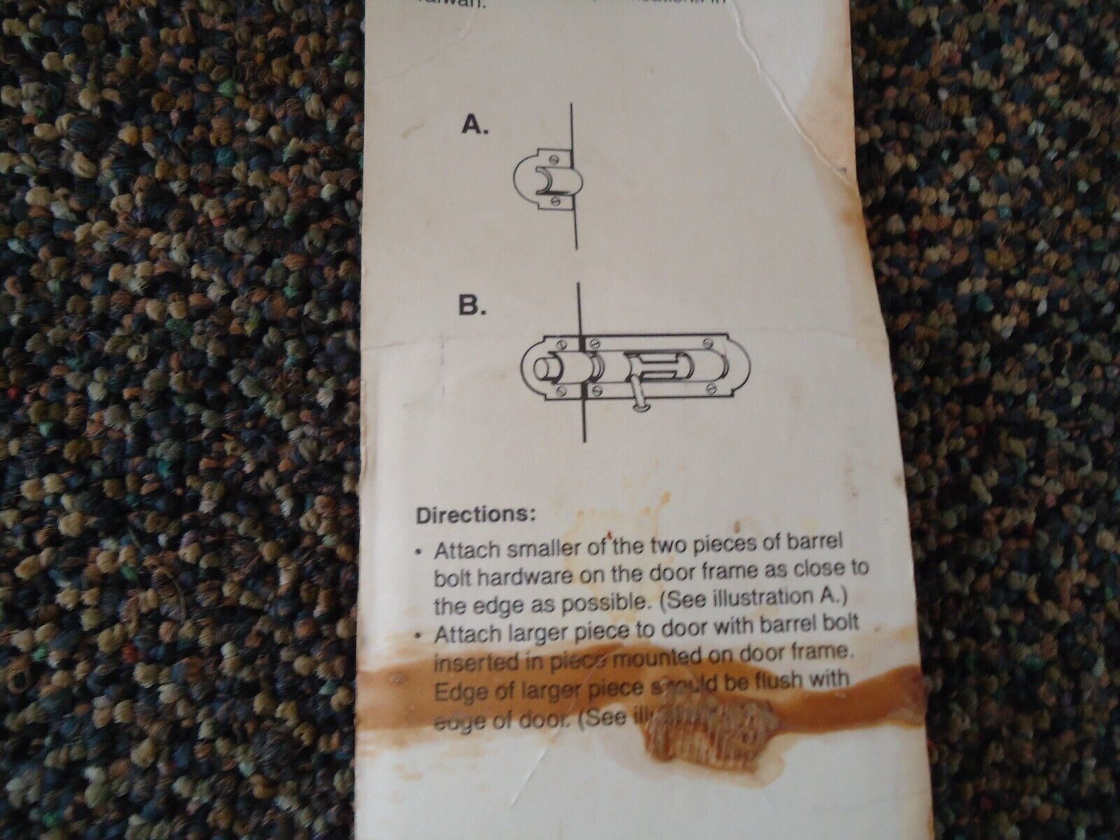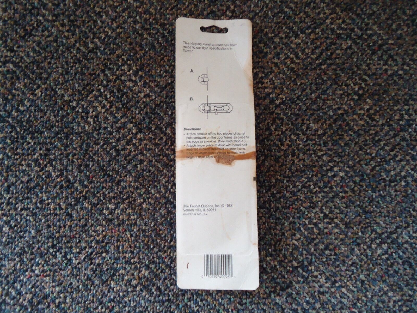 Here is a " NIP " Helping Hand 3" Barrel Bolt " GREAT ITEM ".If you have any concerns or questions about this item(s) please ask before bidding / purchasing because this item(s) is being SOLD AS IS.Thank You.-(PC86)