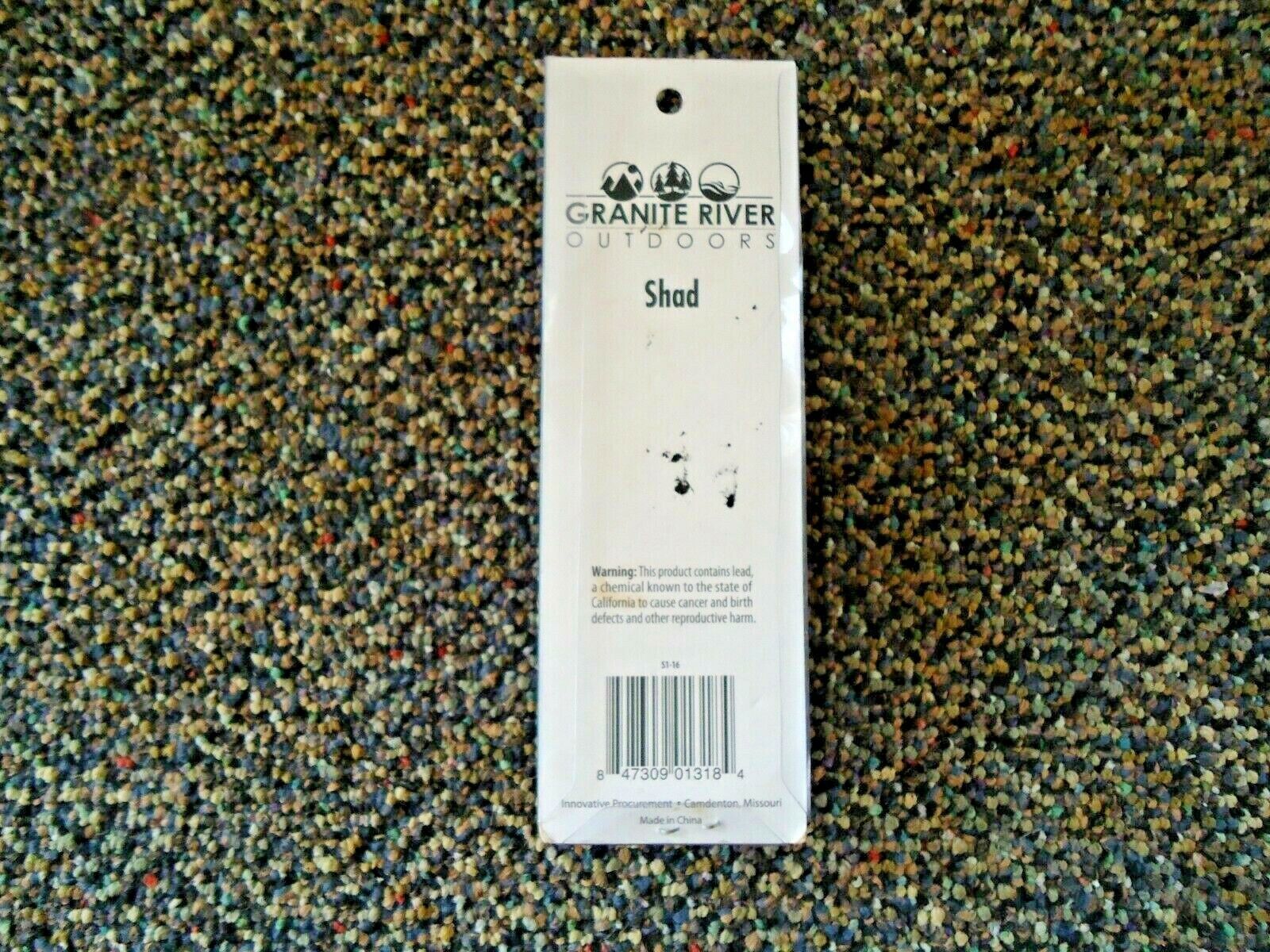 Here is a " NIP " Granite River Outdoors Shad Fishing Lure " GREAT LURE ".If you have any concerns or questions about this item(s) please ask before bidding / purchasing because this item(s) is being SOLD AS IS.Thank You.-(CONT)