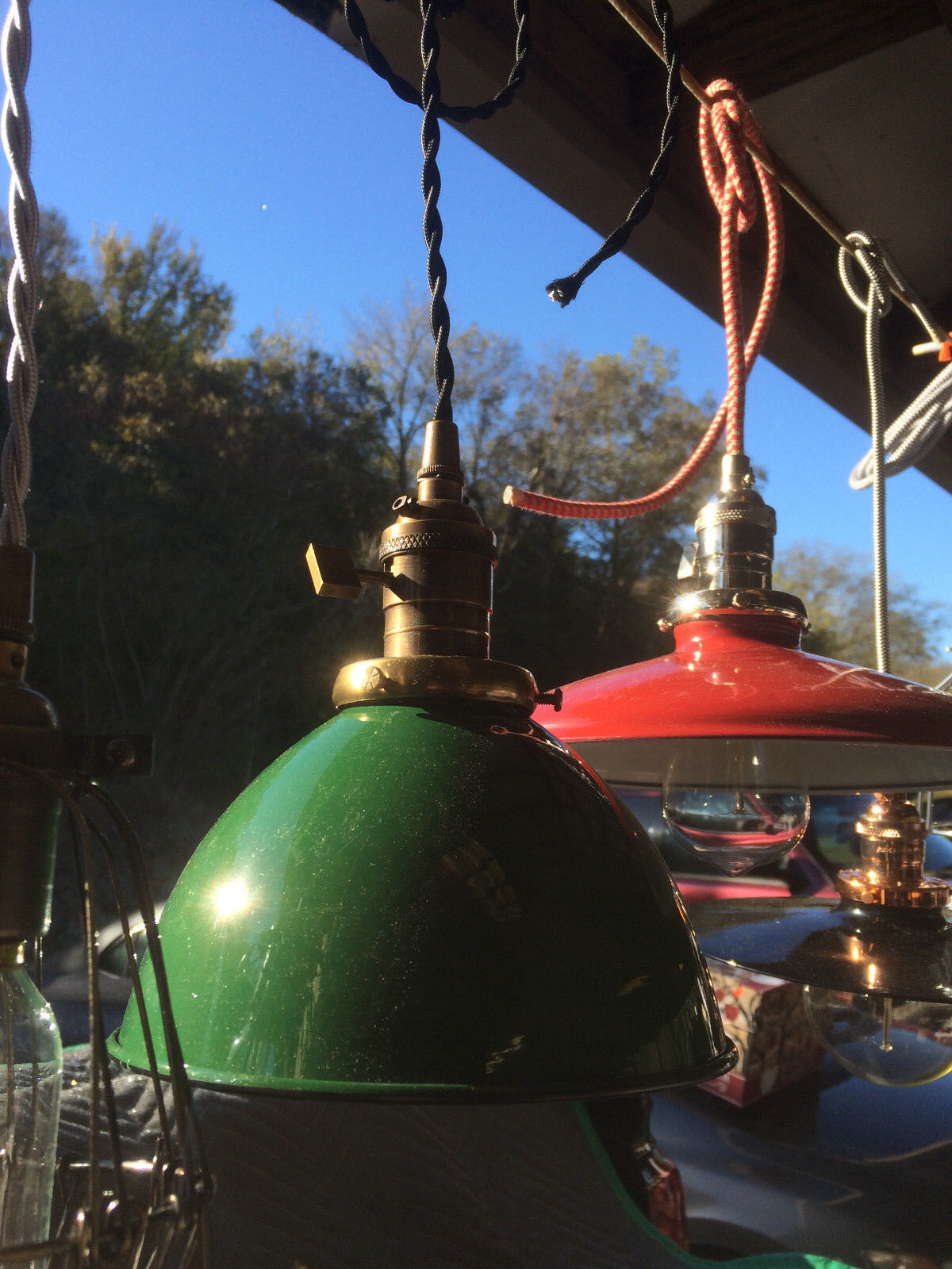 A true replica of the vintage farmhouse shades of the past, these porcelain enamel finish metal shades are a thing of beauty! Recreate that vintage style without having to hunt down overpriced antiques covered in rust and dirt. Heavy duty, industrial, gorgeous, these are the real deal. Green on the outside, white on the inside, thin black pinstripe on the rim. They are 7 inches wide, 4-1/4" tall, and the neck is made for a 2-1/4" shade holder (we sell the fitters in many finishes, as well as the threaded sockets needed to mount them. Plus vintage style cloth cord, Edison bulbs, plugs, canopies, cages... EVERYTHING you'll need to make your own DIY vintage style lighting and save a bundle.)