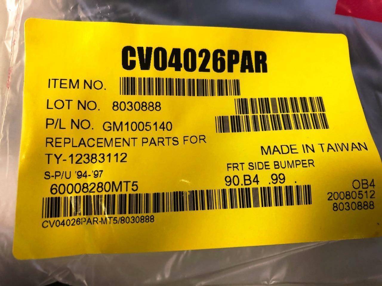PLEASE REVIEW THE PICTURES AND MATCH PART NUMBERS TO ENSURE THAT THIS IS THE CORRECT RIGHT SIDE FRONT BUMPER END CAP FOR YOUR 1994-1997 CHEVROLET S-10 PICKUP, BLAZER OR OLDSMOBILE BRAVADA!