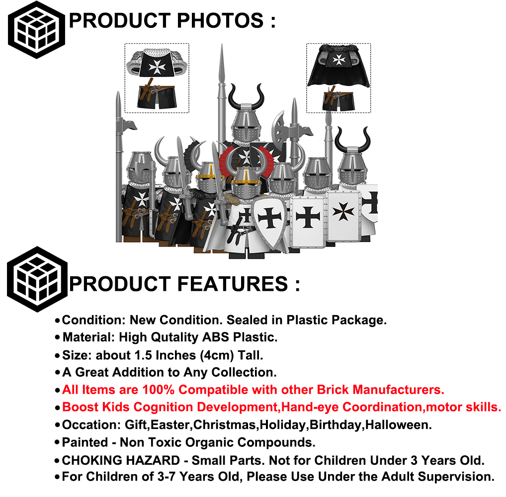 Medieval Heavy Teutonic Knights & Knights Hospitaller 8 Minifigures Lot