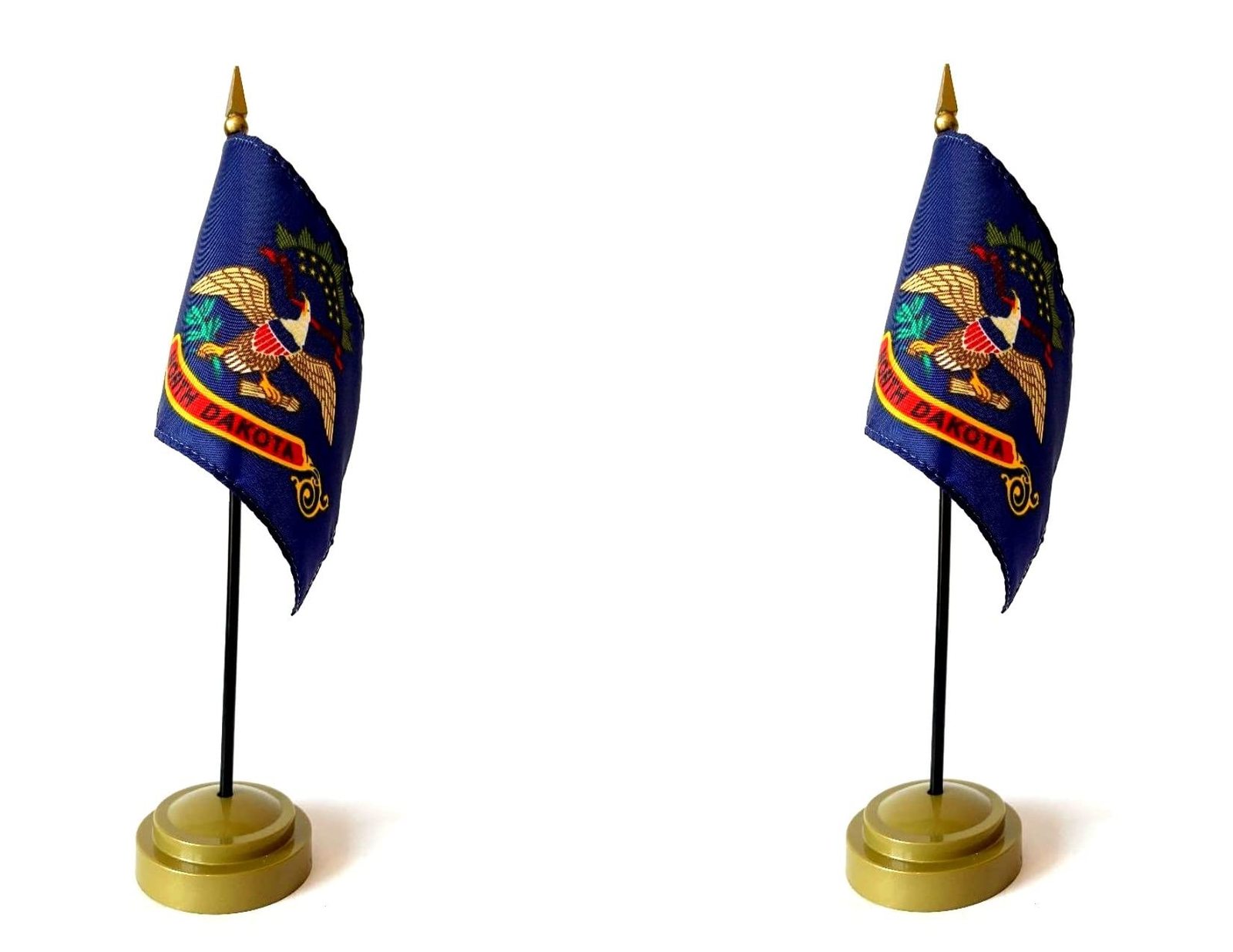 Made in The USA Flag Set. 2 North Dakota Rayon 4"x6" Miniature Office Desk & Lit