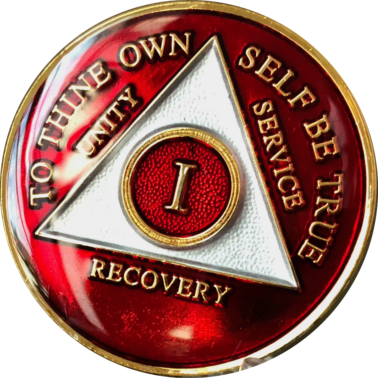 Lof of any 4 AA Medallion Red Tri-Plate Sobriety Chip Year 1 - 40 Available.