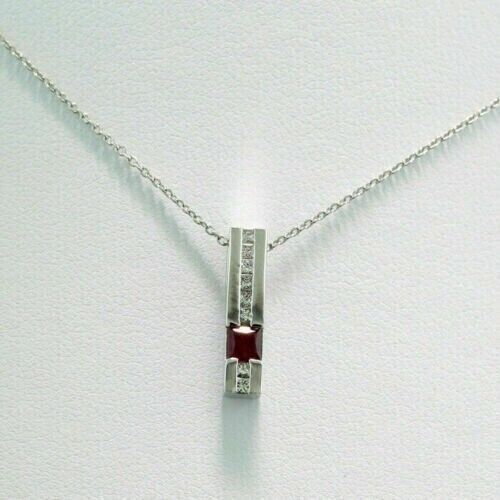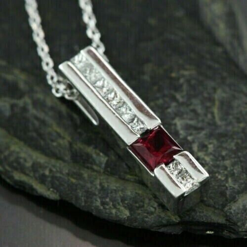 Ciondolo a barra con incastonatura del canale di granato CZ da 2 carati...