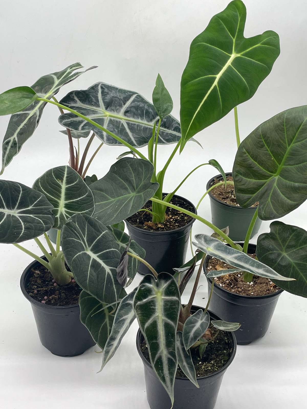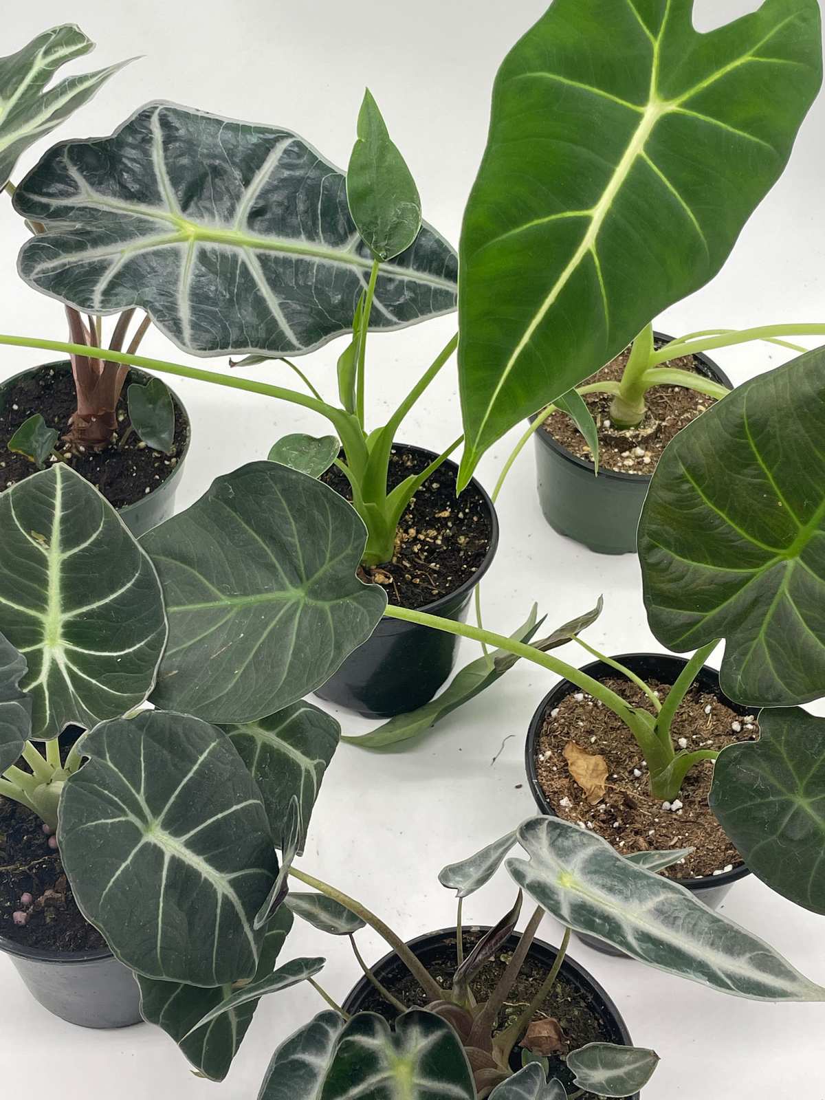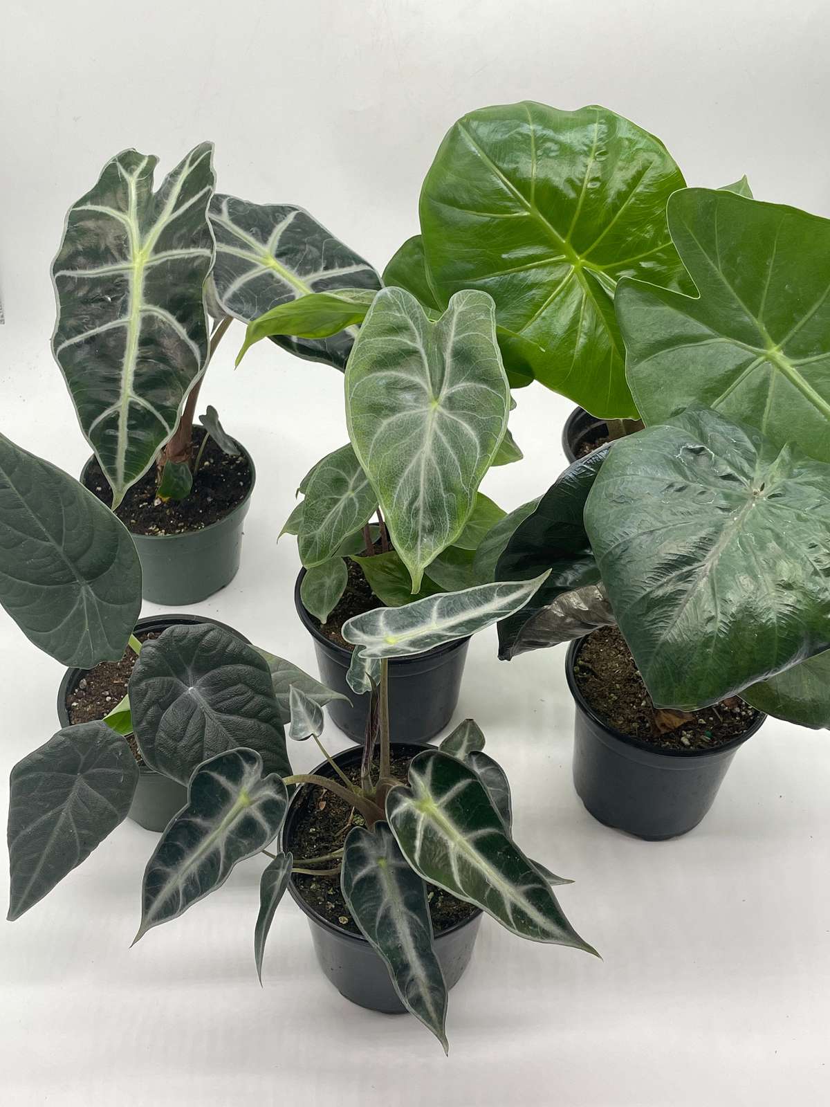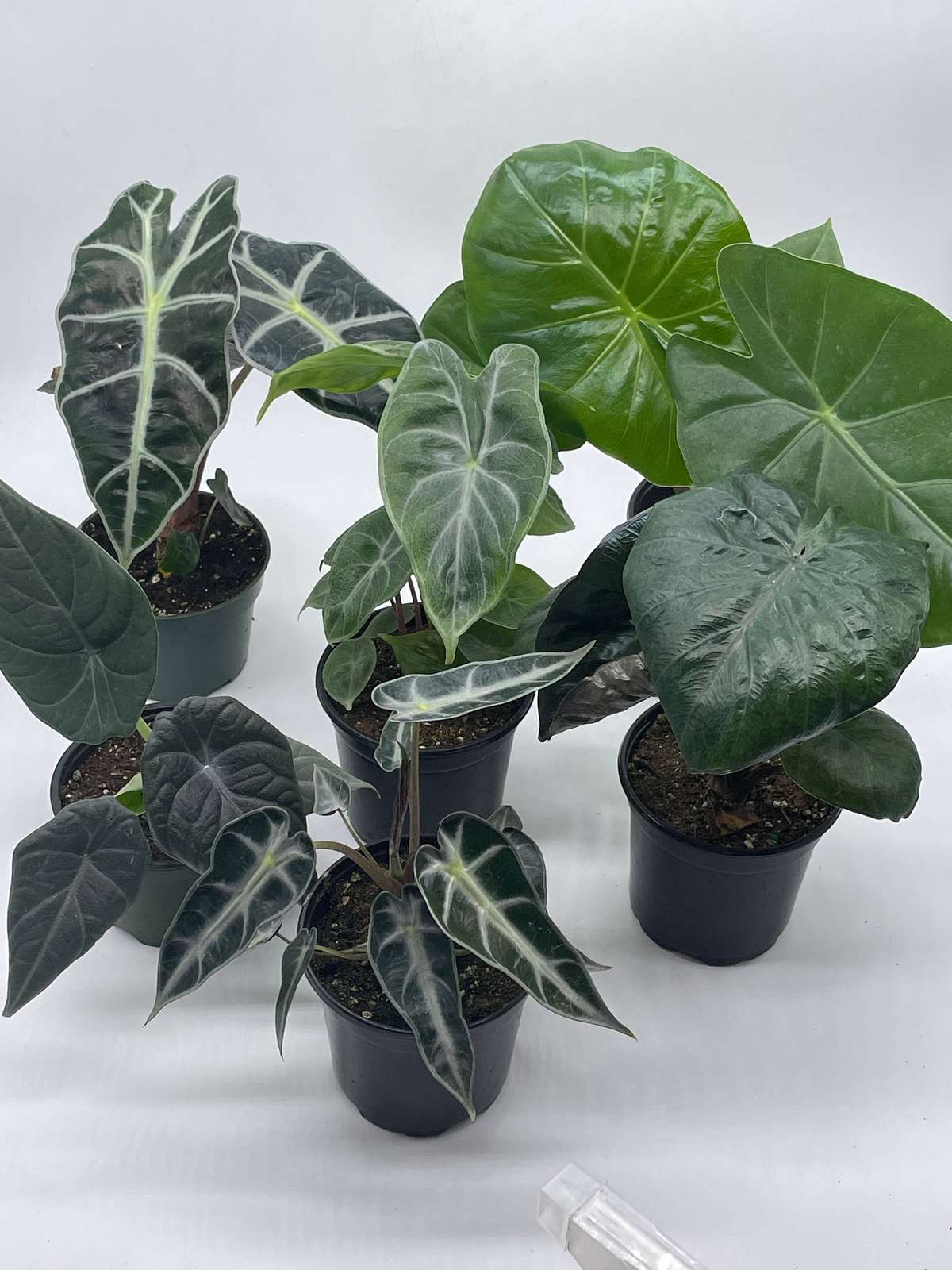 Alocasia Assortment Set, 4 inch pots, 6 Different Alocasias, Frydek, Black Velve