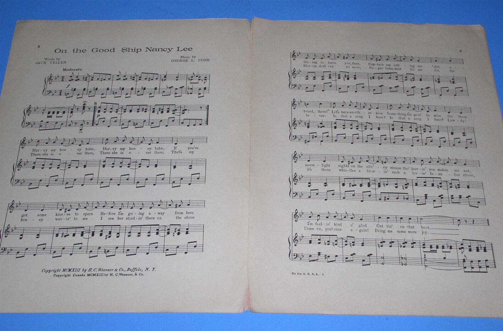 On the Good Ship Nancy Lee Sheet Music Vintage 1913 H. C. Weasner Yellen Cobb