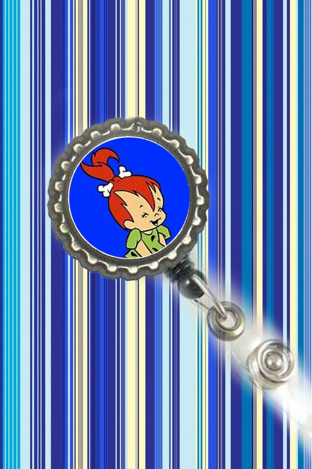 Pebbles Flinstones work Retractable Reel ID Badge Holder nurse pediatrics cna