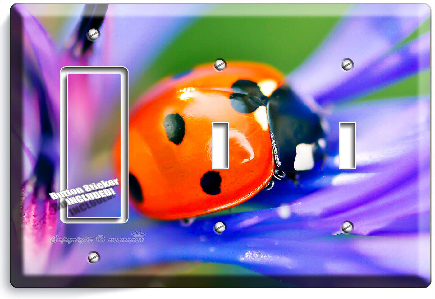 RED LADYBUG ON A WILD FLOWER LIGHT SWITCH OUTLET WALL PLATES ROOM HOME ART DECOR
