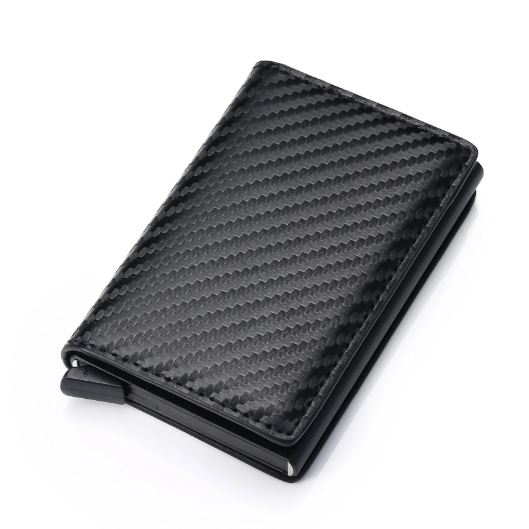 With its pop-up aluminum card holder, this wallet provides easy access to your cards. Slide up