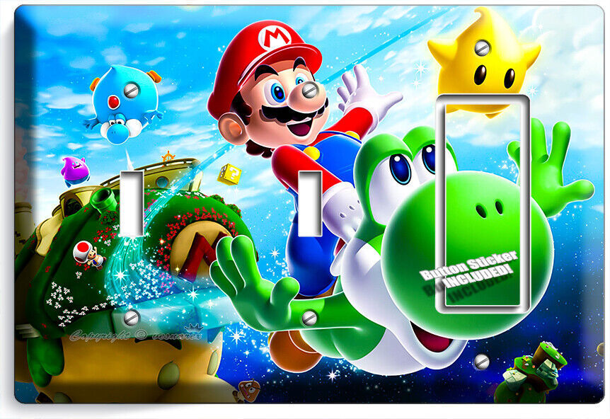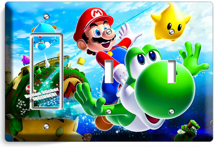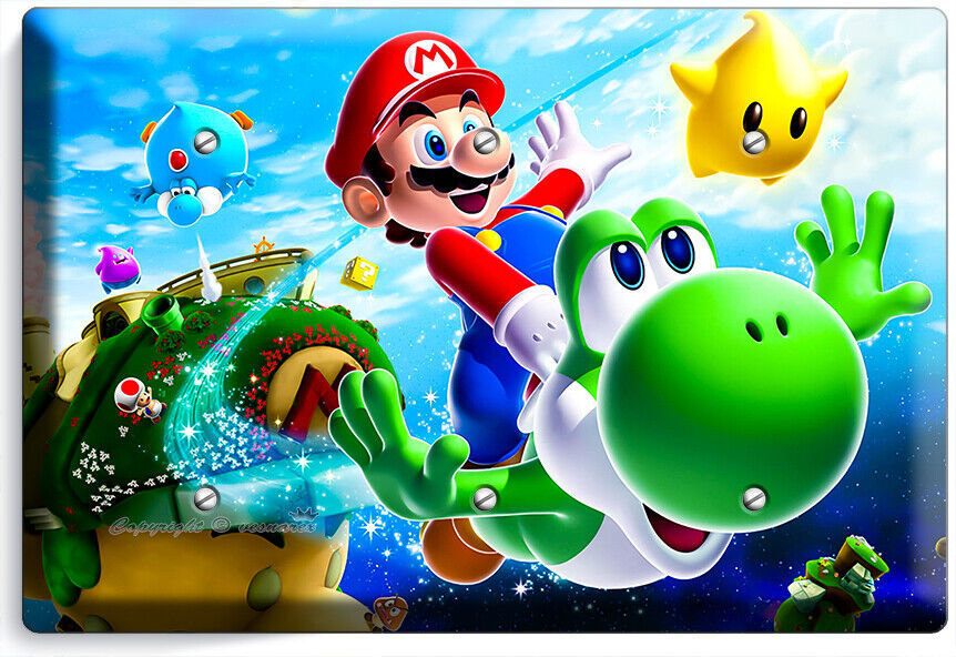SUPER MARIO FLYING YOSHI GALAXY SPACE LIGHT SWITCH OUTLET PLATES GAME ROOM DECOR