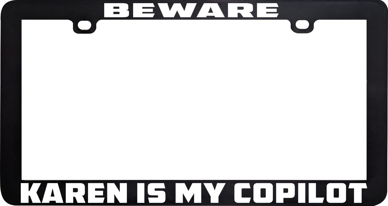 BEWARE KAREN IS MY COPILOT PRIVILEGED ENTITLED FUNNY HUMOR LICENSE PLATE FRAME