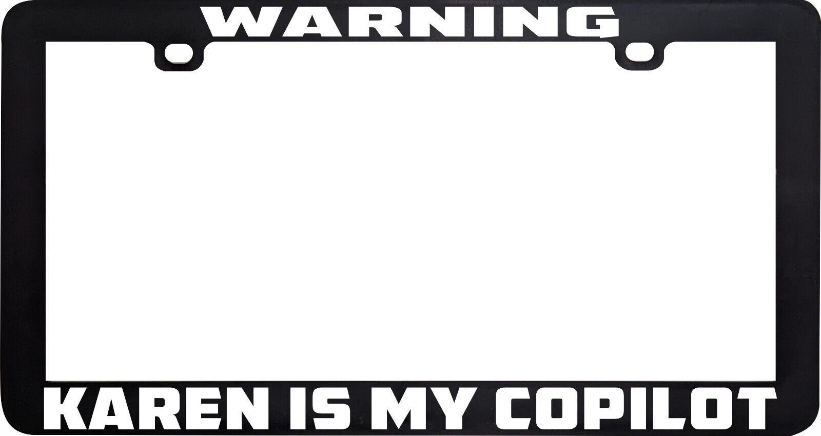 WARNING KAREN IS MY COPILOT PRIVILEGED ENTITLED FUNNY HUMOR LICENSE PLATE FRAME