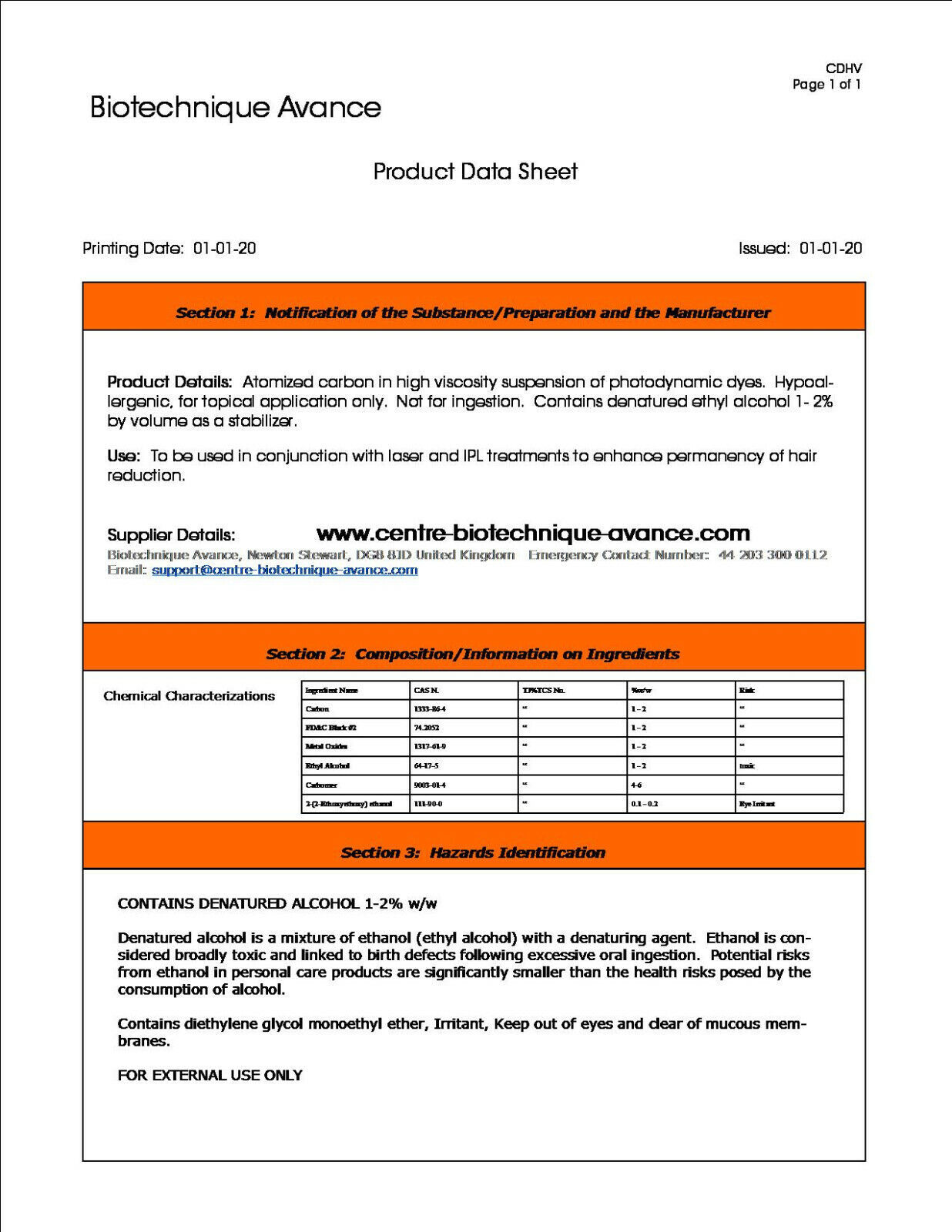 50ml carbon dye gel, 50ml of pre-treatment gel, 50ml of post treatment gel, 50ml supply of post treatment gel