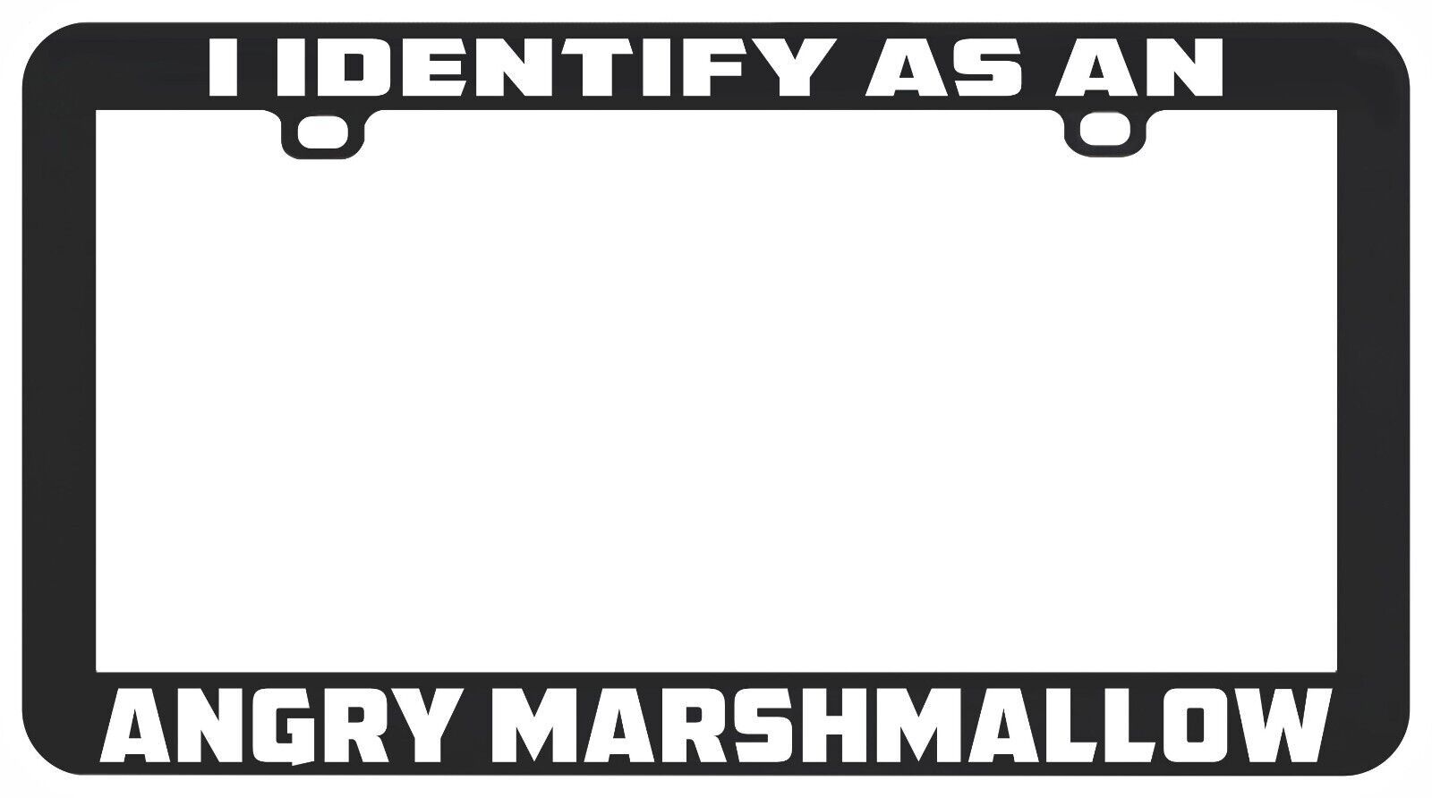 I IDENTIFY AS ANNO ANGRY MARSHMALLOW WEIRD FUNNY LICENSE PLATE FRAME HOLDER