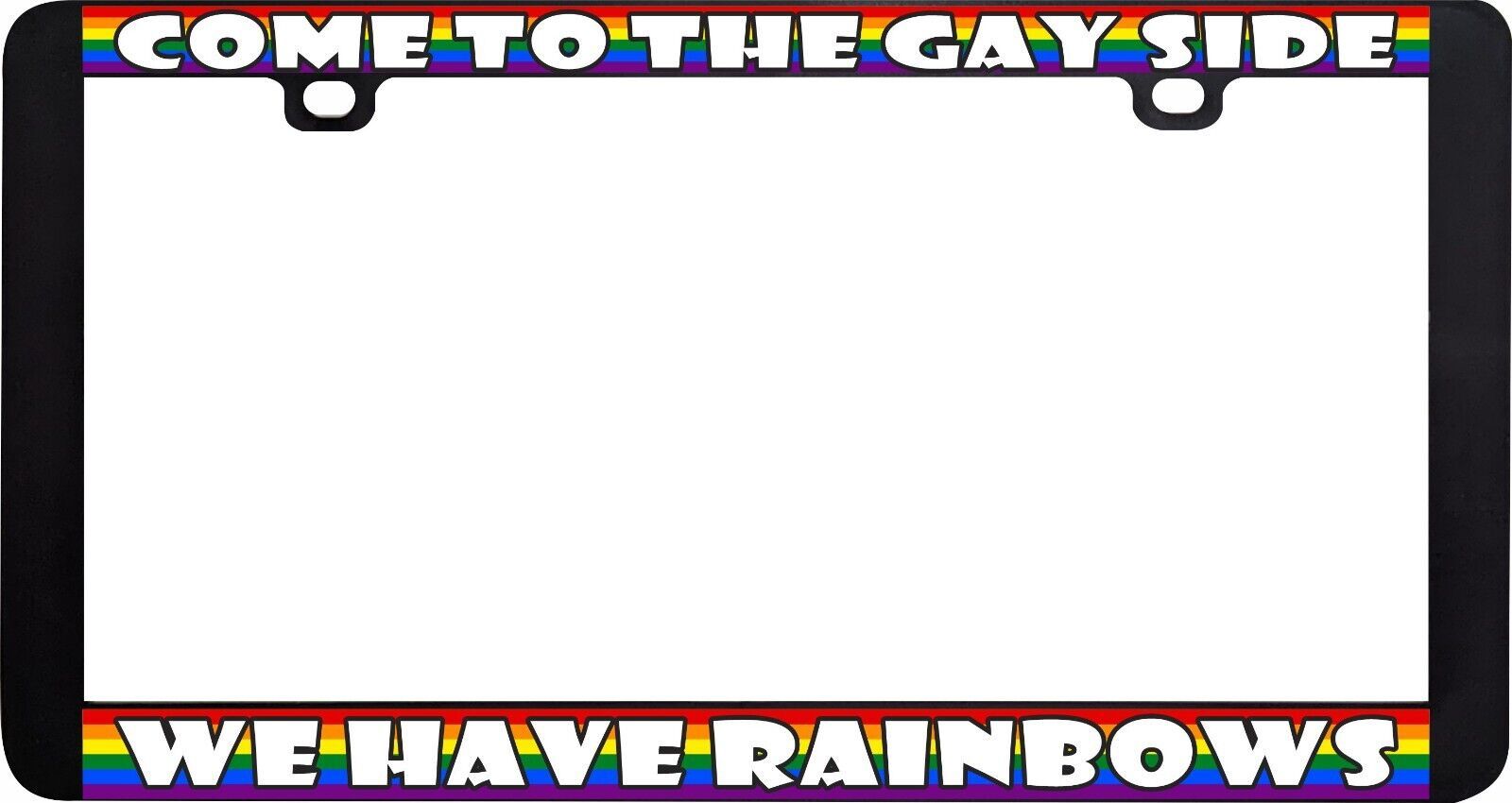 COME TO THE GAY SIDE WE HAVE RAINBOWS FUNNY GAY LGBTQ+ LICENSE PLATE FRAME