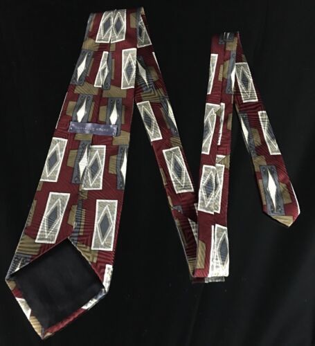 You Are Buying A GEOFFREY BEENE BLACK Grey SILVER SQUARE BLOCKS SILK NECKTIE TIE Unique