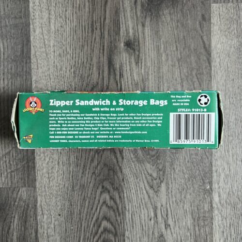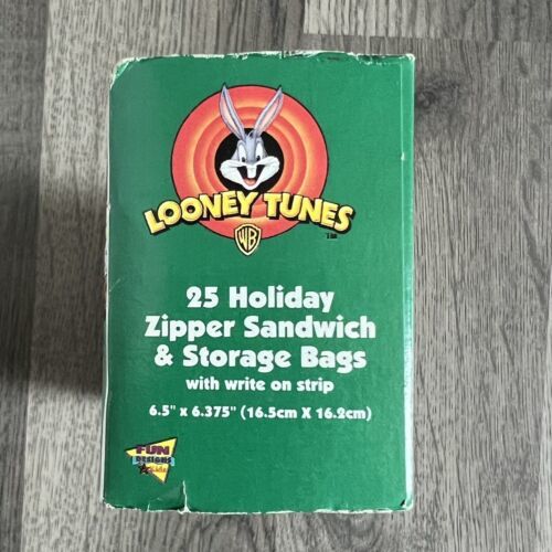 Vintage 1999 NOS Looney Tunes Holiday Zipper Sandwich & Storage Bags Bugs Taz 99