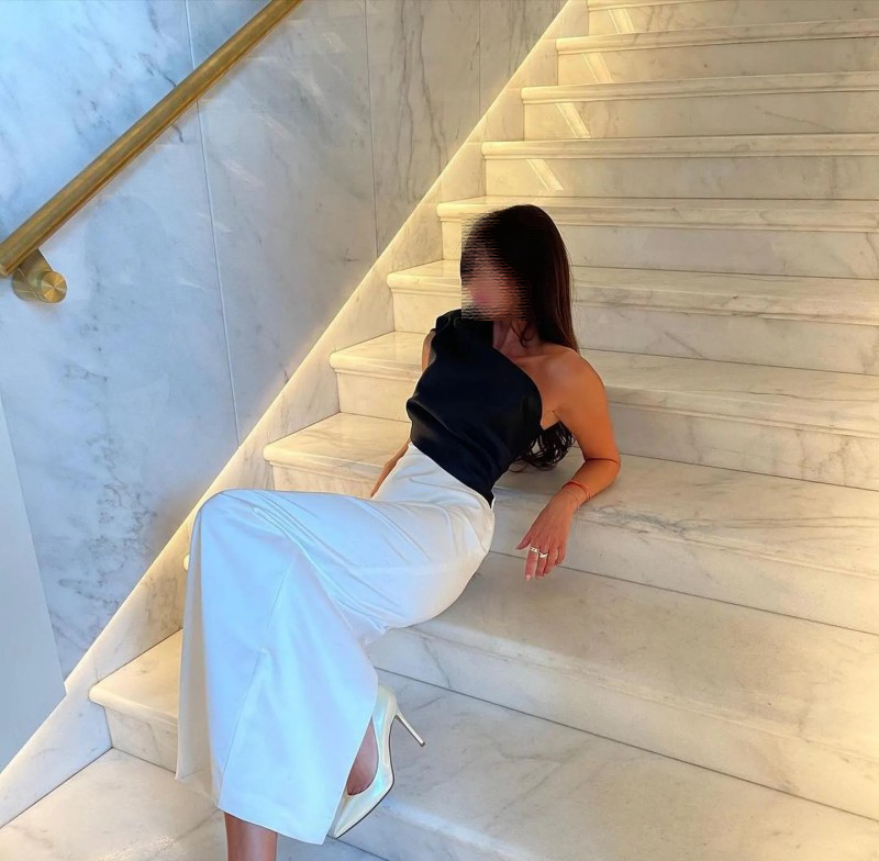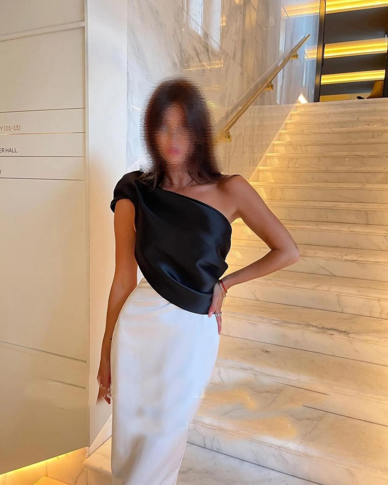 One-Shoulder Satin Black and White Splicing and similar items