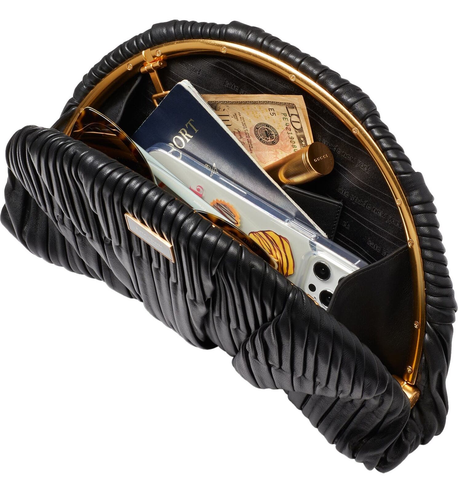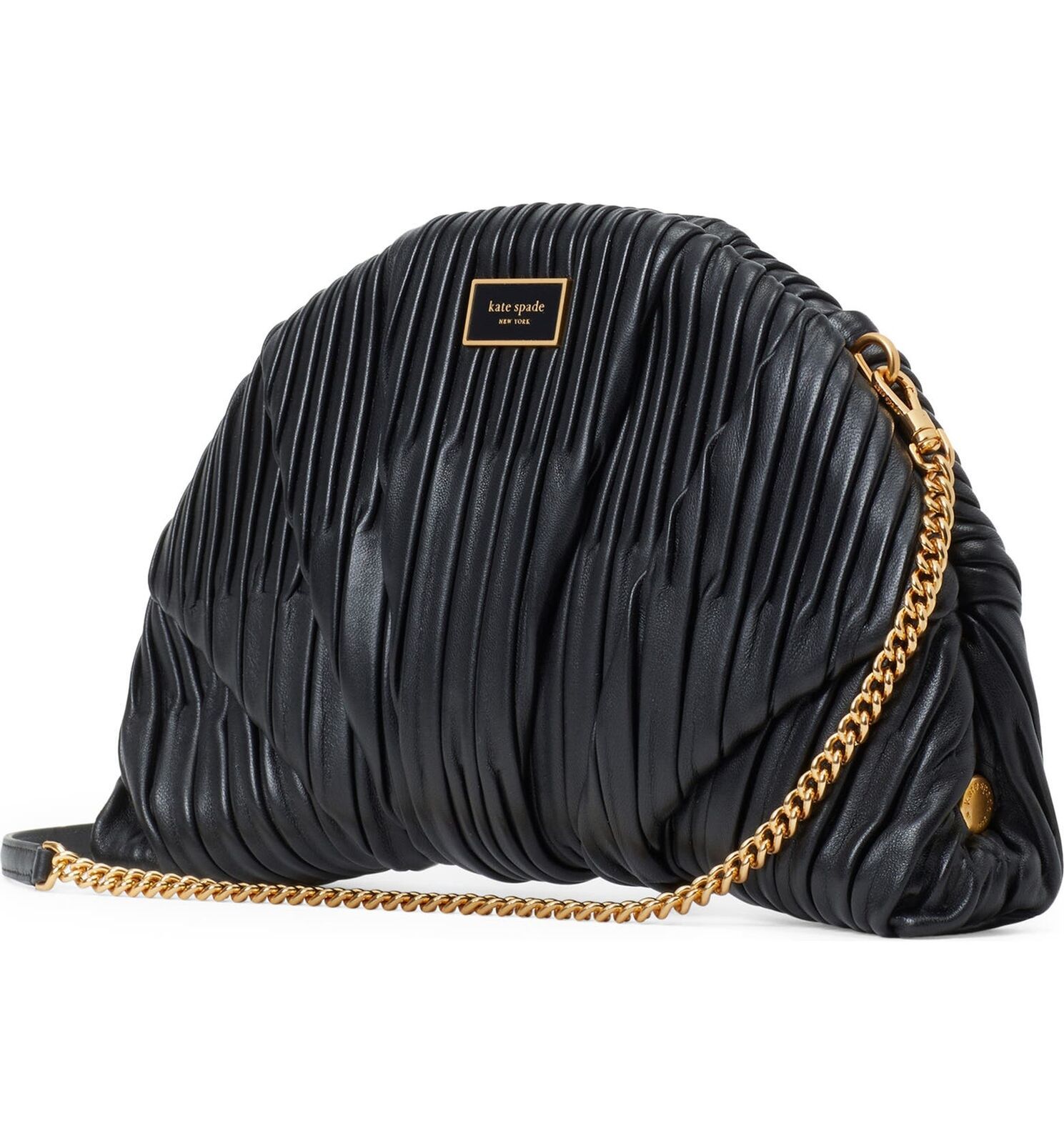 Kate Spade Patisserie Pleated 3d Croissant Clutch Leather Crossbody ~NWT~ Black
