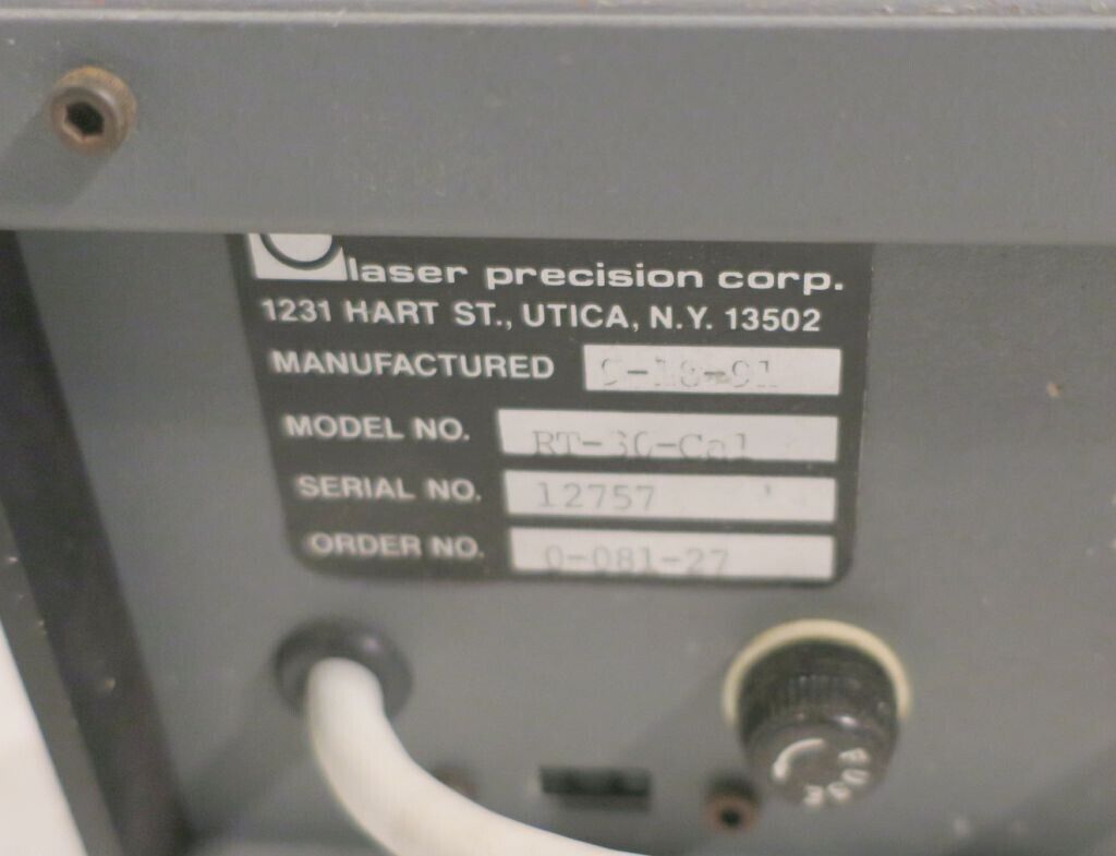 Laser Precision Corp Model: RT-30-Cal Laser Power Monitor. Item powers on and appears to be in good physical and working condition. Please view photos. Responds to inputs.
