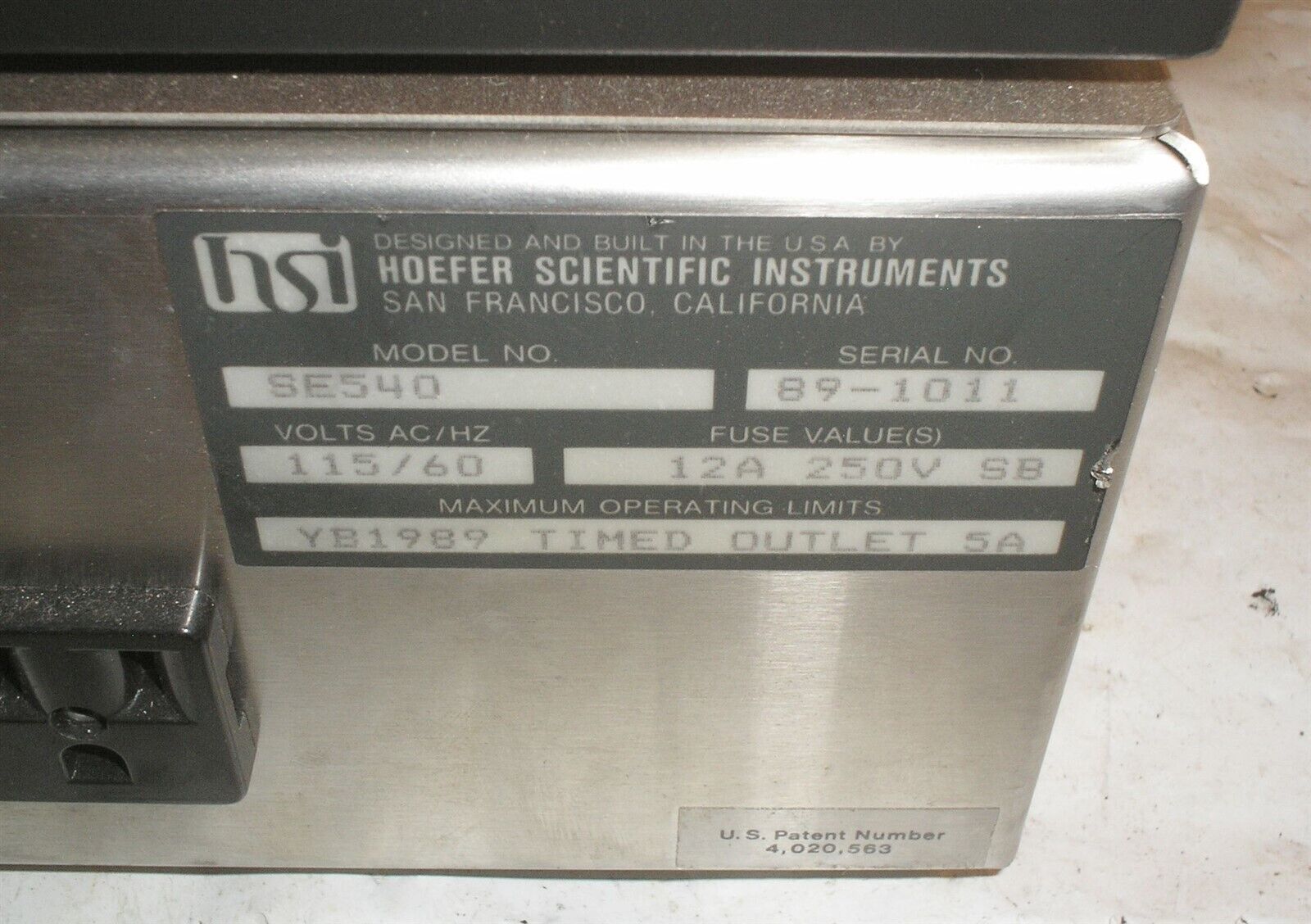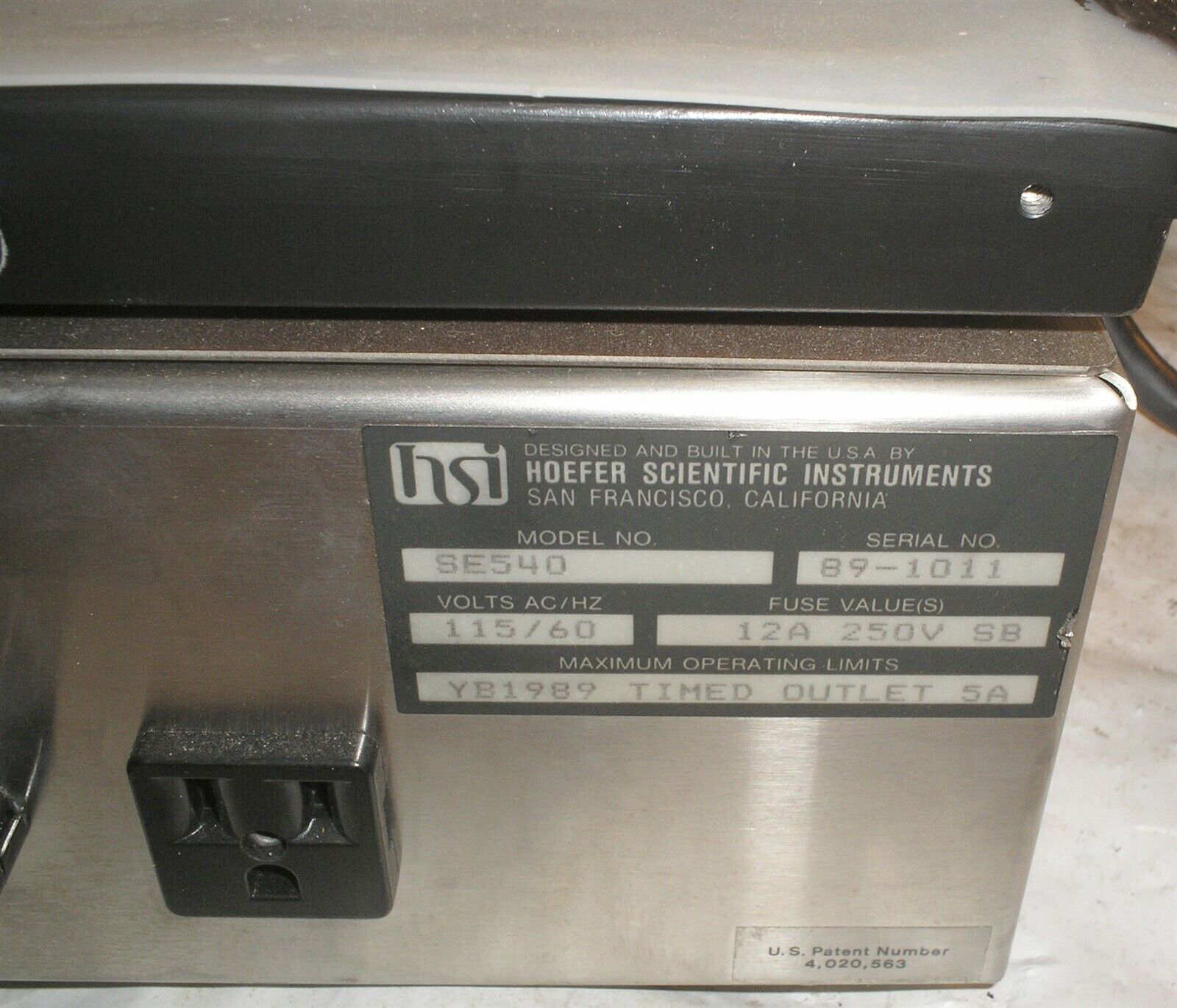 Hoefer Model SE540 Drygel JR. Unit has some sticky spots on the top cover but is in otherwise good physical and working condition. See photos.