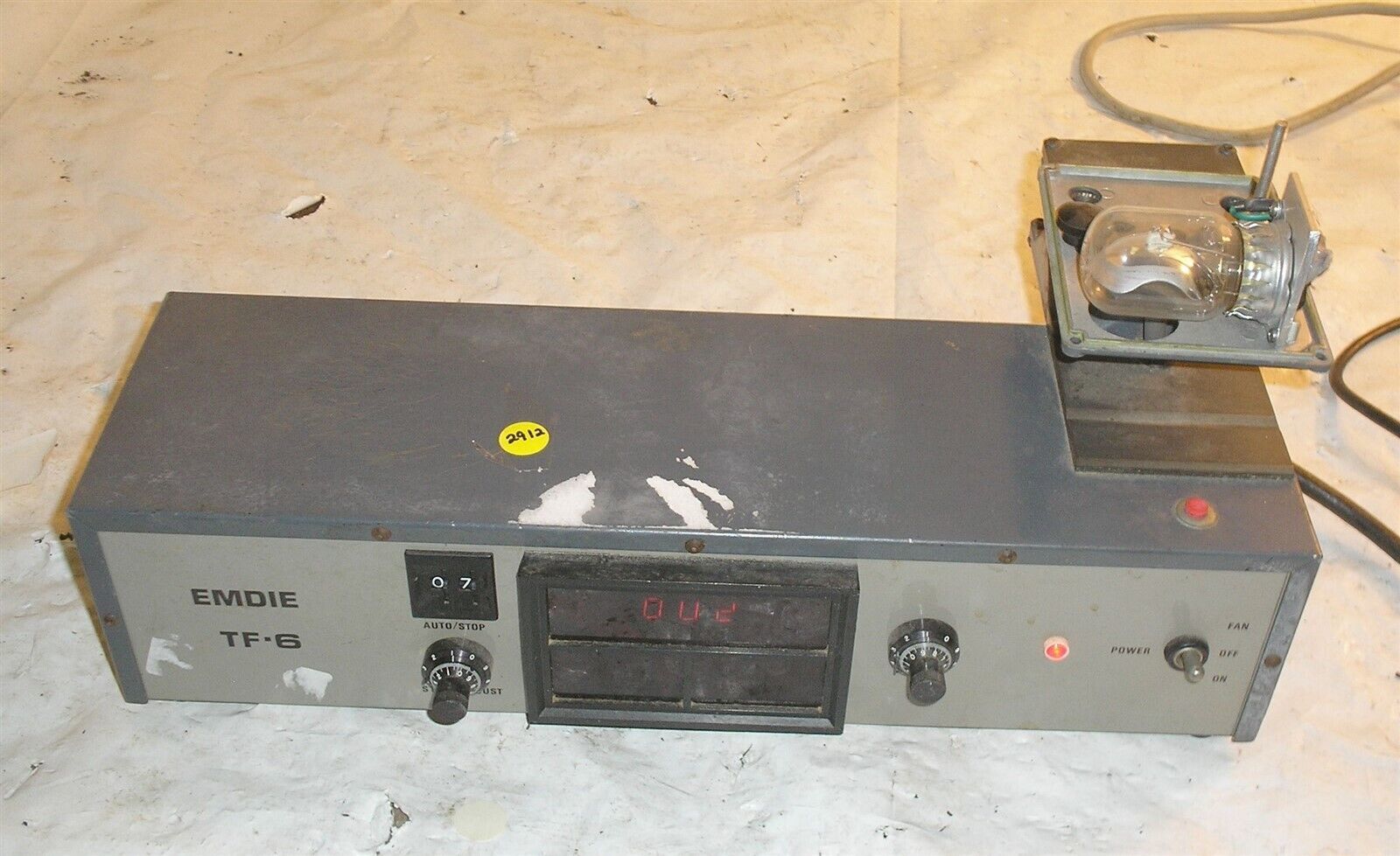 Emdie Instrument TF-6 Light. I am really not sure what this does but when you push the buttons the bulb will illuminate or go off. It seems that it may be some kind of timing system for the light. See photos for physical condition.