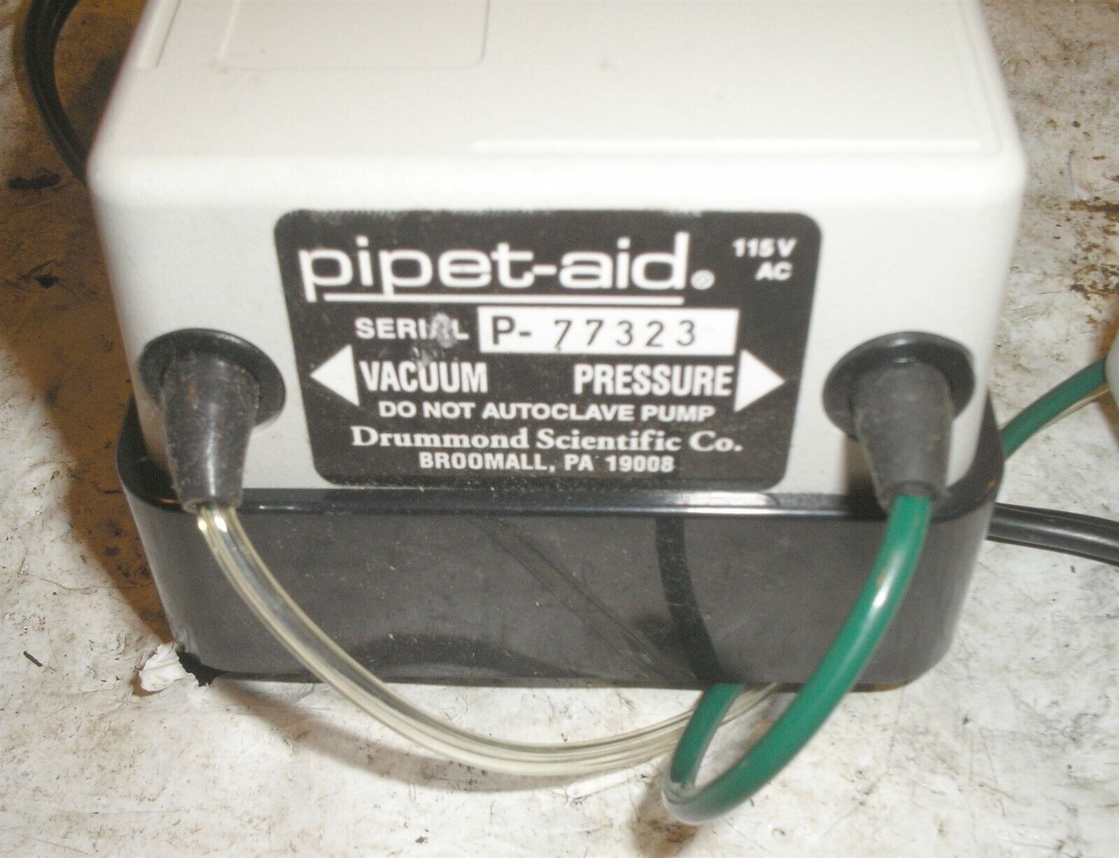 Drummond Pipet-Aid Pipette with Vacuum and Pressure Pump. Unit powers up and appears to be in good physical and working condition. See photos.
