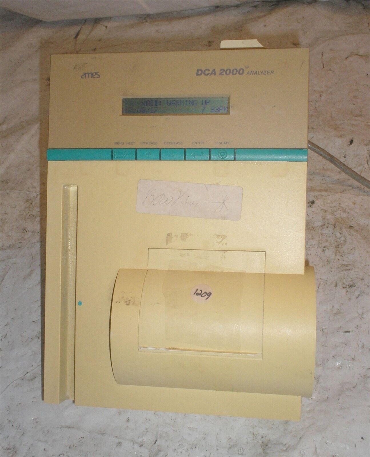 Ames DCA 2000 Analyzer Model: 5030. Please see this is missing a cover on the side. Powers up OK.