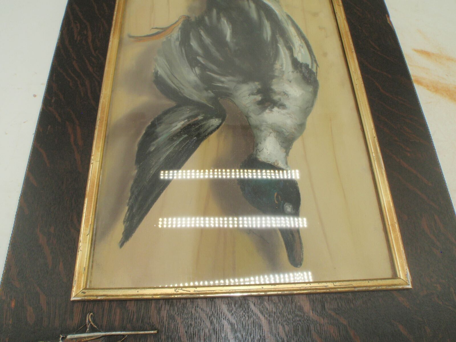 Ducks Hunting Picture Or Print w Vintage Wood Frame 26" x 18". Sold as pictured.