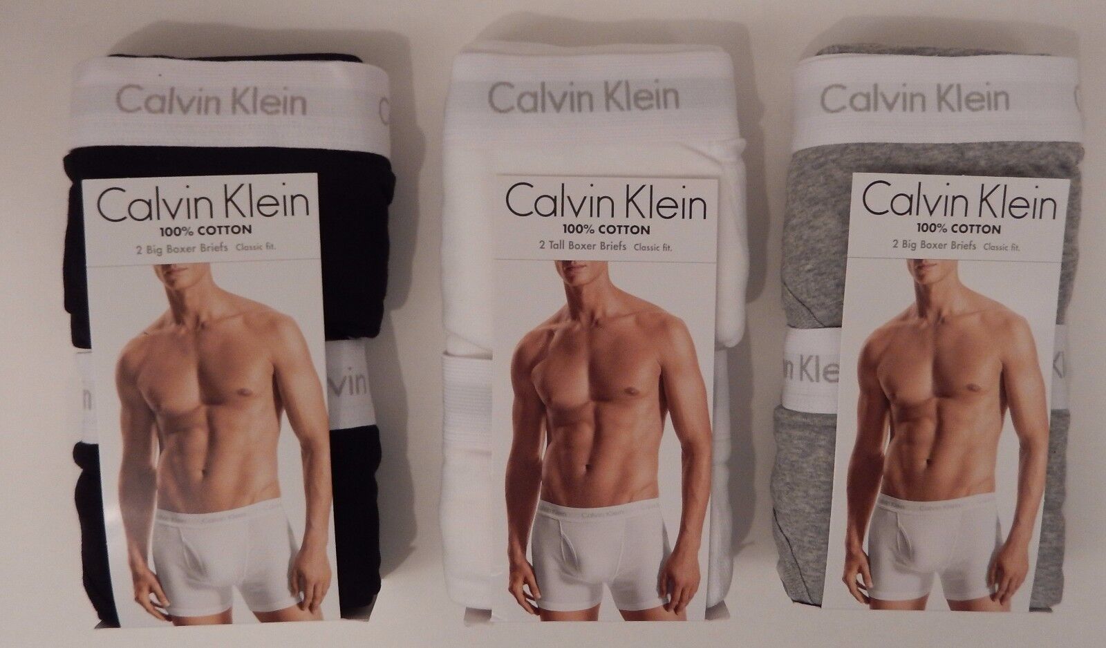 2 CALVIN KLEIN 1XL TO 5XL BLACK GRAY WHITE 100% COTTON BOXER BRIEFS UNDERWEAR