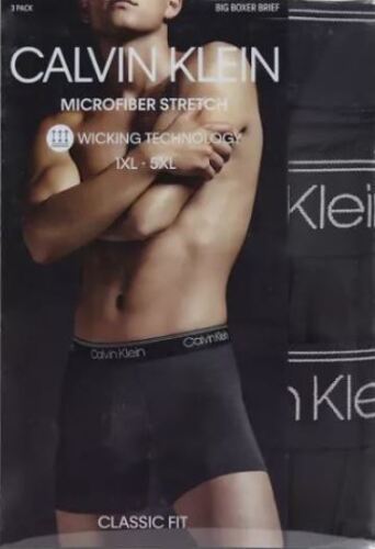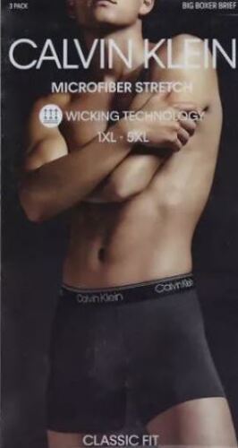 3 GENUINE CALVIN KLEIN BIG&TALL 1XL TO 5XL BLACK MICROFIBER STRETCH BOXER BRIEFS